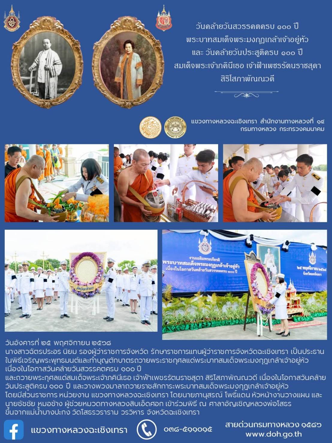 วันคล้ายวันสวรรคตครบ ๑๐๐ ปี พระบาทสมเด็จพระมงกุฎเกล้าเจ้าอยู่หัว และวันคล้ายวันประสูติครบ ๑๐๐ ปี สมเด็จพระเจ้าภคินีเธอ เจ้าฟ้าเพชรรัตนราชสุดา สิริโสภาพัณณวดี ๒๕ พฤศจิกายน ๒๕๖๘