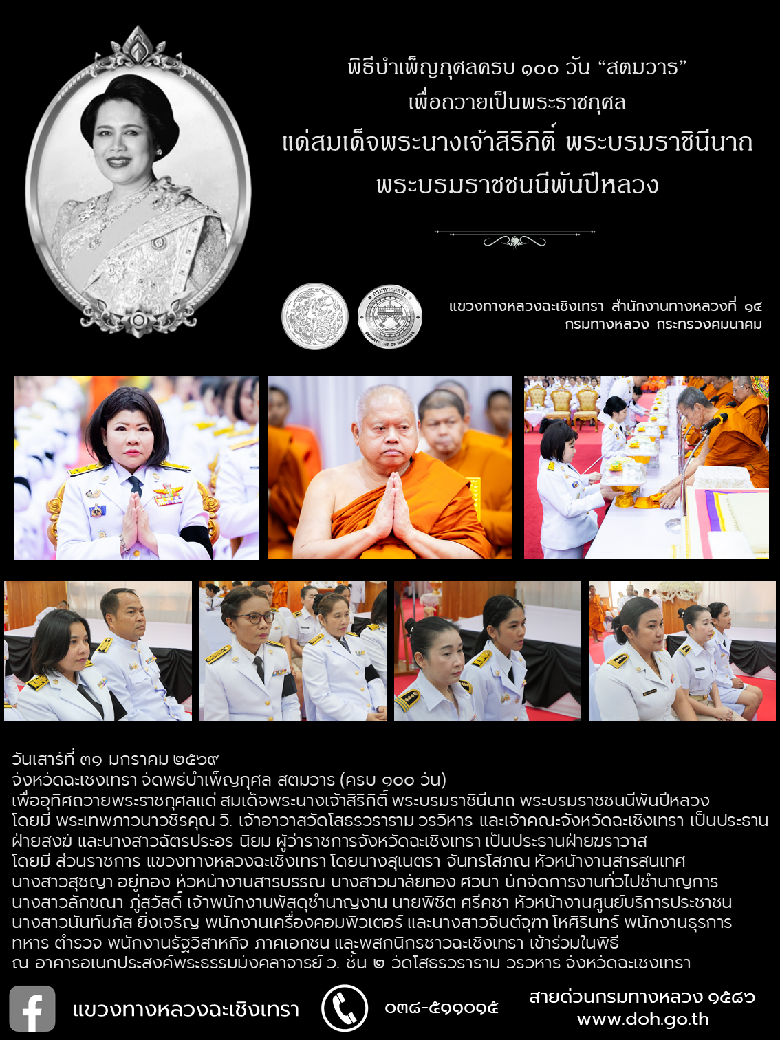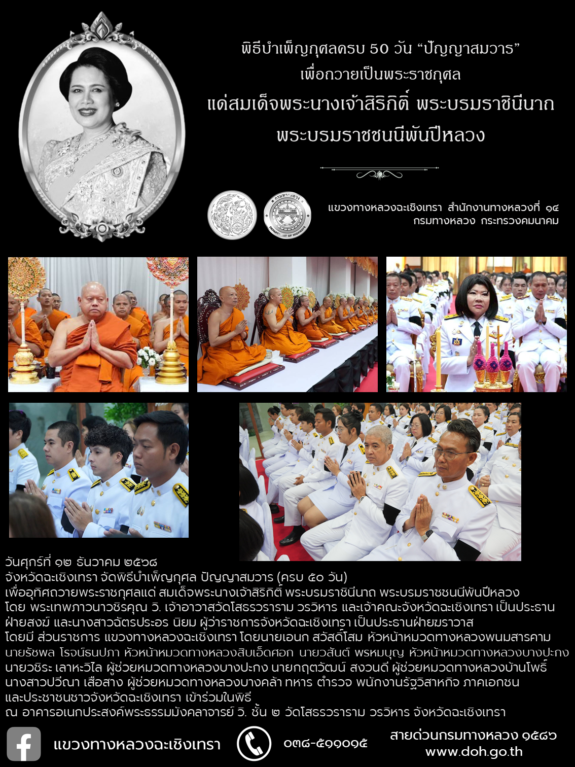 พิธีบำเพ็ญกุศลสวดพระอภิธรรม เพื่อถวายเป็นพระราชกุศล แด่สมเด็จพระนางเจ้าสิริกิติ์ พระบรมราชินีนาถ พระบรมราชชนนีพันปีหลวง จังหวัดฉะเชิงเทรา