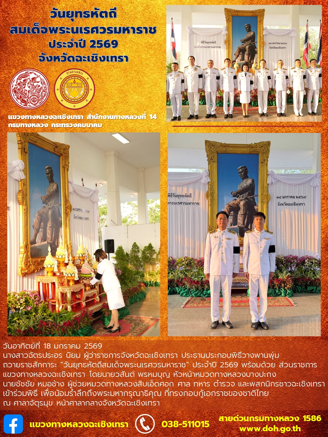 วันยุทธหัตถีสมเด็จพระนเรศวรมหาราช ประจำปี 2569 จังหวัดฉะเชิงเทรา