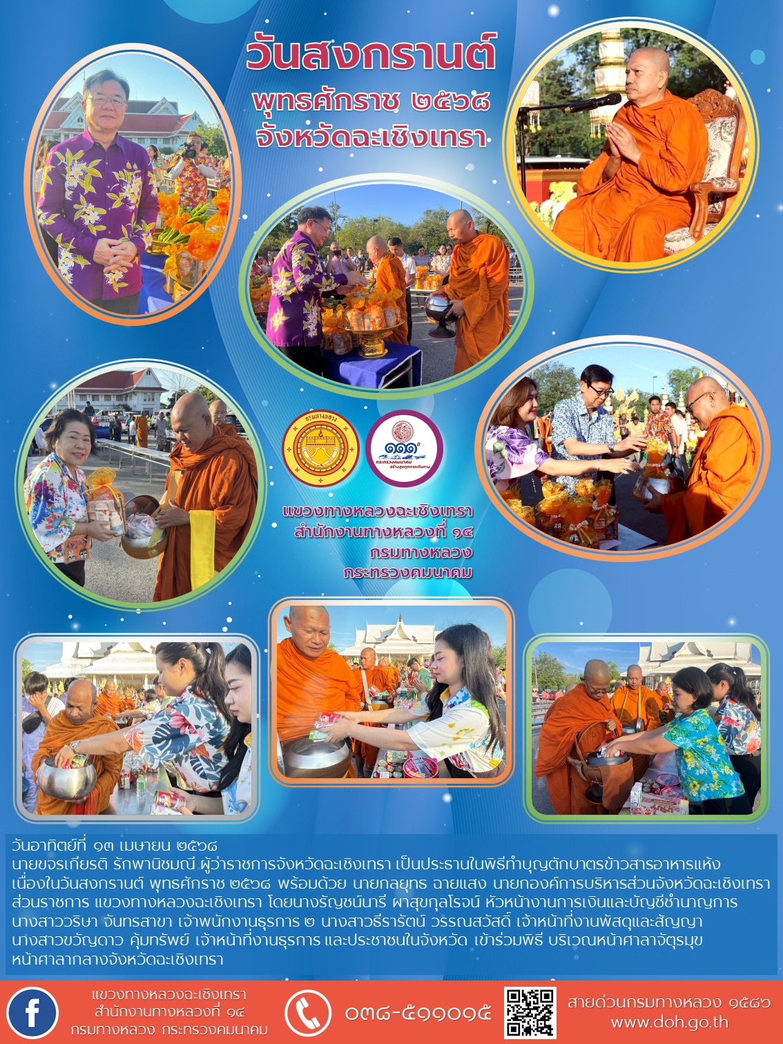 พิธีทำบุญตักบาตรข้าวสารอาหารแห้ง เนื่องในวันสงกรานต์ พุทธศักราช ๒๕๖๘ จังหวัดฉะเชิงเทรา
