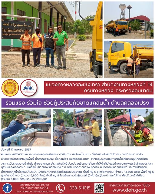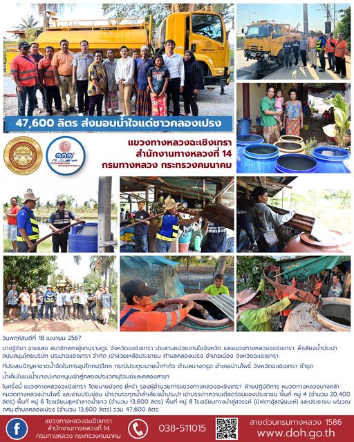 47,600 ลิตร ส่งมอบน้ำใจชาวคลองเปรง ผู้ประสบภัยขาดแคลนน้ำเหตุประตูระบายน้ำท่าถั่วชำรุด |