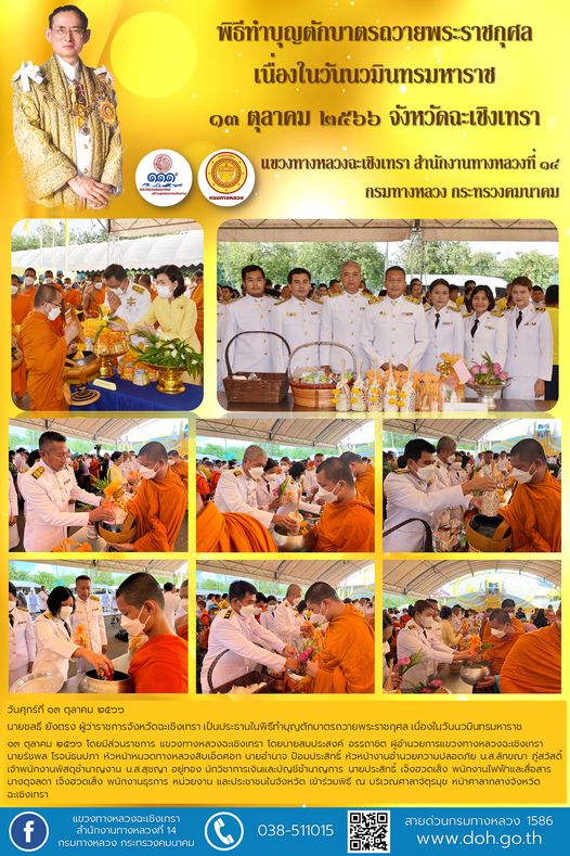 พิธีทำบุญตักบาตรถวายพระราชกุศล เนื่องในวันนวมินทรมหาราช ๑๓ ตุลาคม ๒๕๖๖ จังหวัดฉะเชิงเทรา |