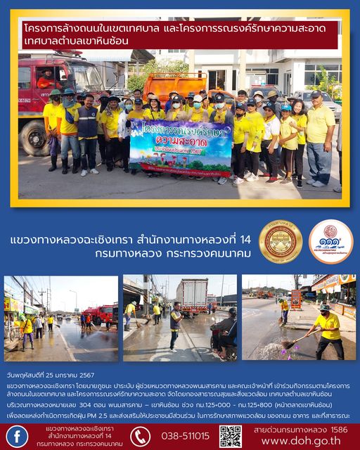 จิตอาสา ทำความสะอาดผิวจราจร และร่องระบายน้ำ บนทางหลวงหมายเลข 304 เขาหินซ้อน |