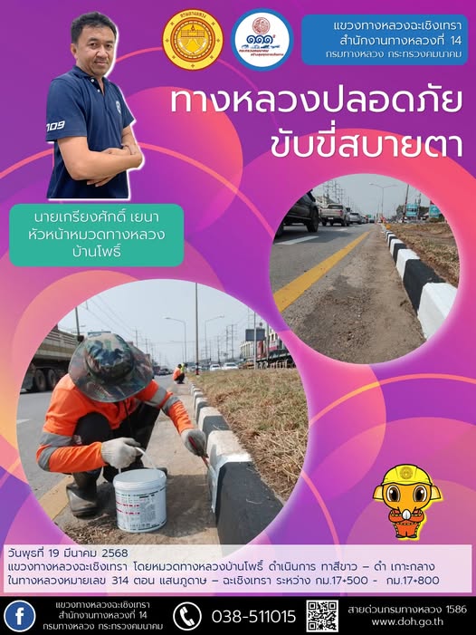 ทาสีขาว – ดำ เกาะกลาง และแบริเออร์คอนกรีต |