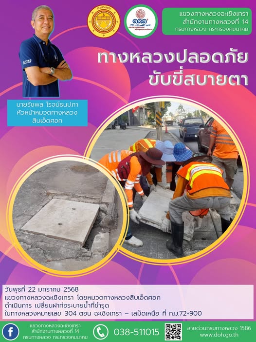 เปลี่ยนฝาท่อระบายน้ำที่ชำรุด |