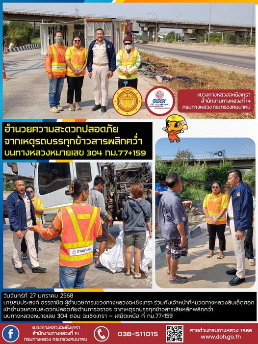 อำนวยความสะดวกปลอดภัย จากเหตุรถบรรทุกข้าวสารพลิกคว่ำ บน ทล.304 |