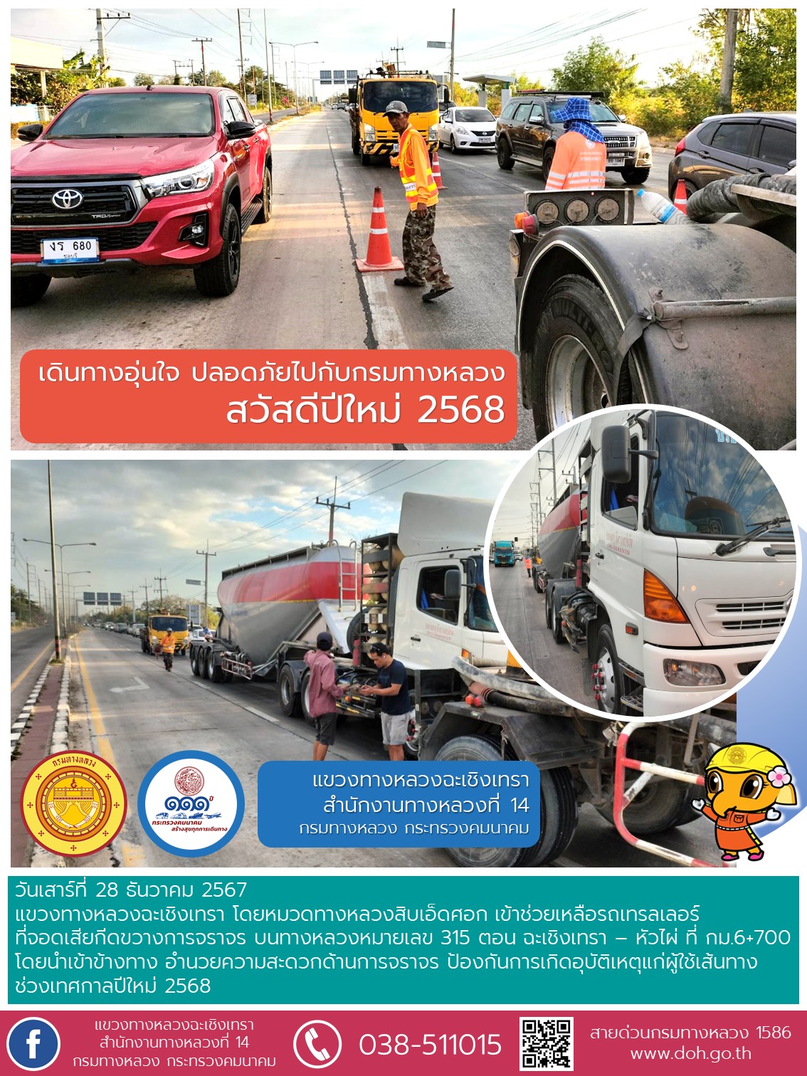 เข้าช่วยเหลือรถเทรลเลอร์ ที่จอดเสียกีดขวางการจราจร |