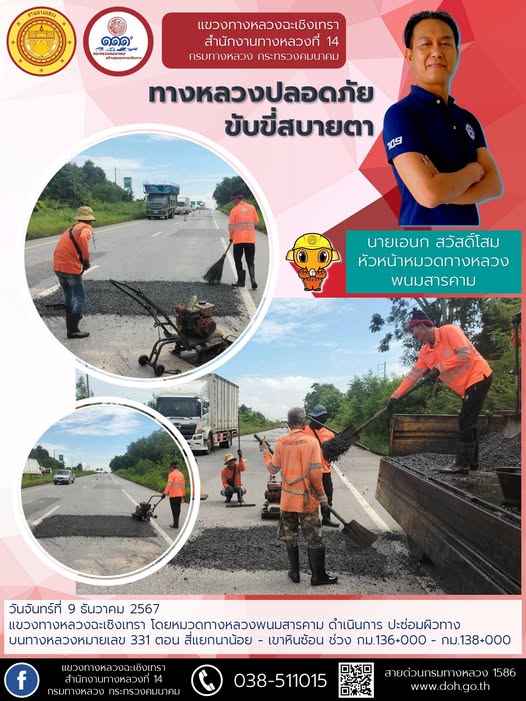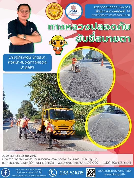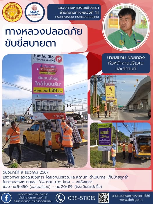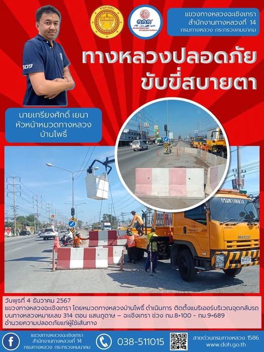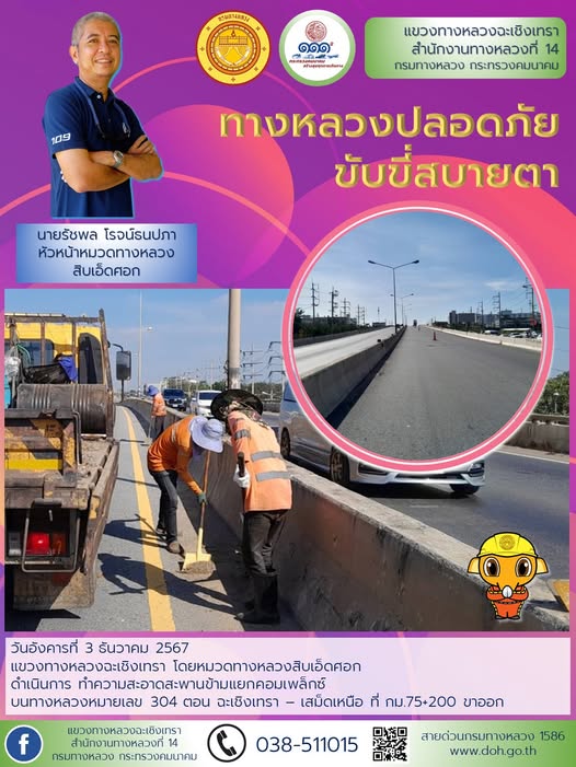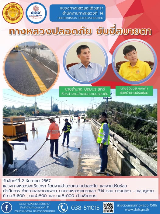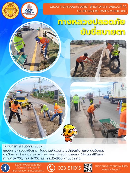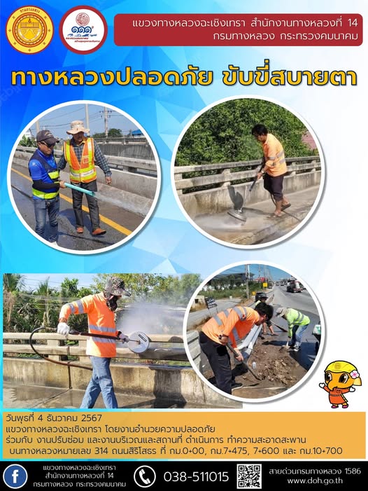 งานทำความสะอาดสะพาน บน ทล.314 ถนนสิริโสธร |