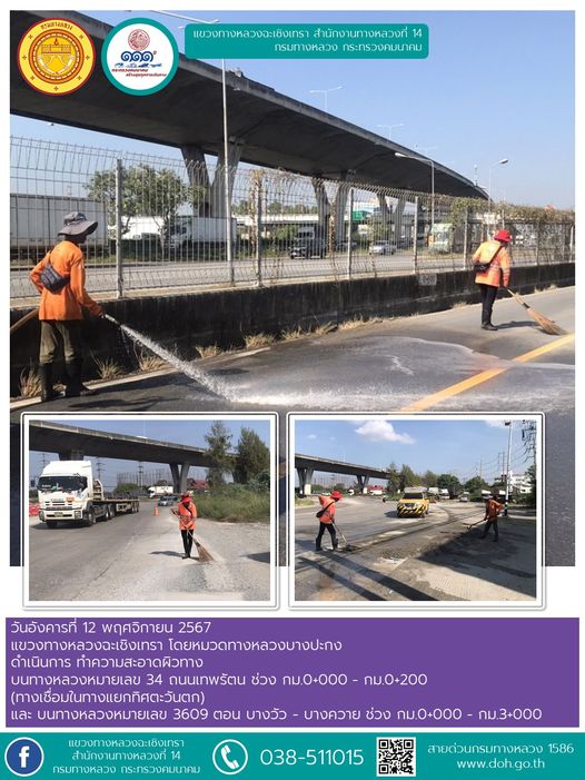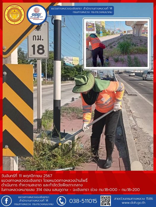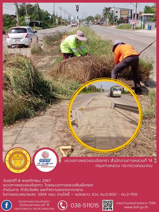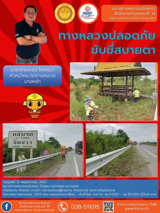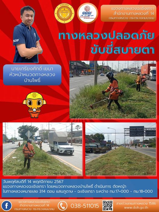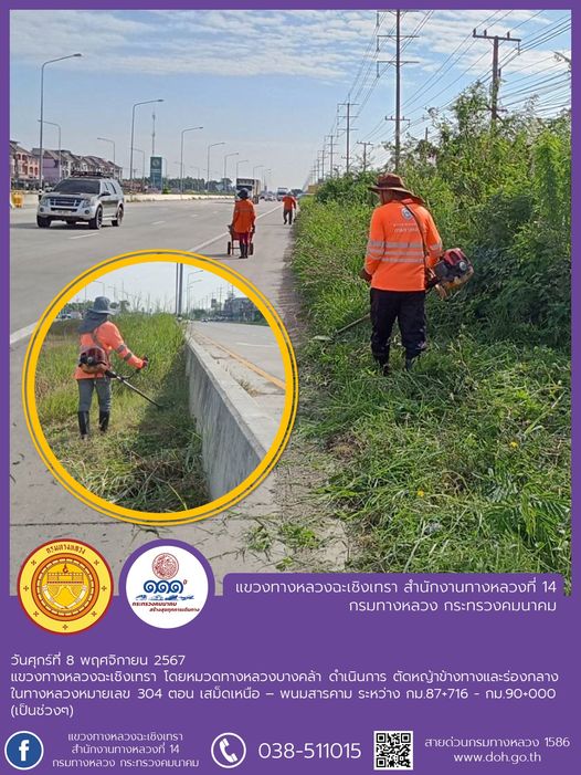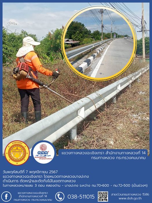 ตัดหญ้า ถางป่า บริเวณศาลาผู้โดยสาร ป้ายจราจร และการ์ดเรล |