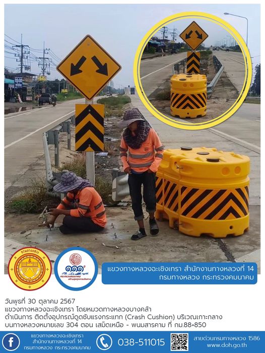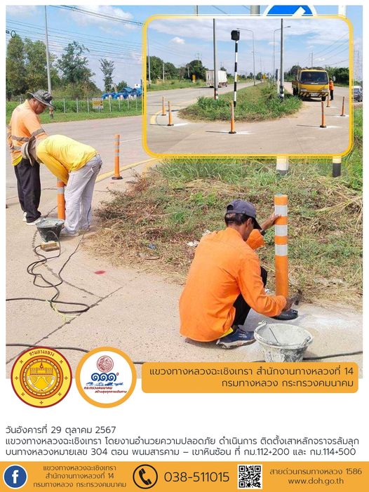 ติดตั้งเสาหลักจราจรล้มลุก |