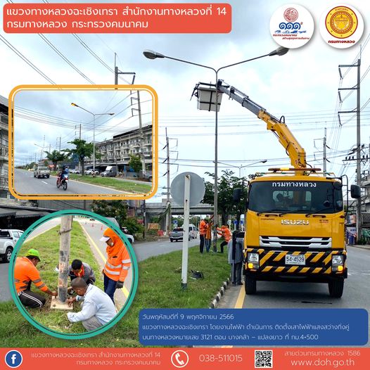 2290 09/11/2566 ติดตั้งเสาไฟฟ้าแสงสว่างกิ่งคู่