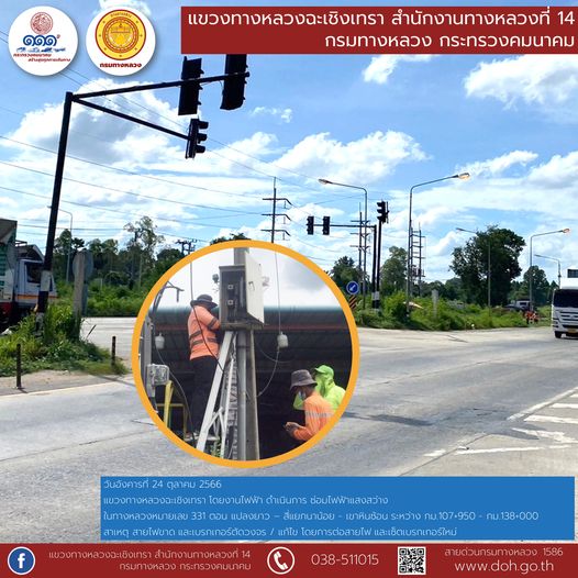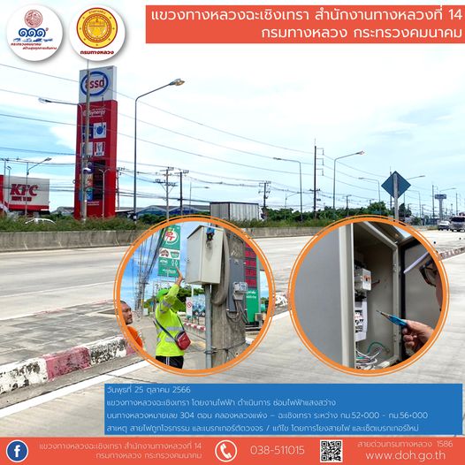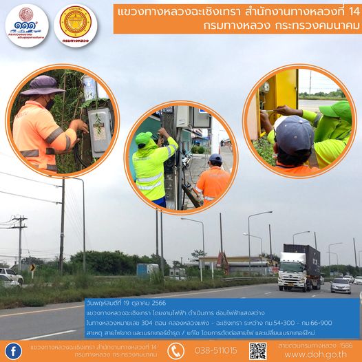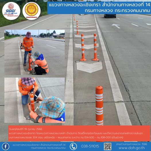 2320 19/10/2566 งานติดสติ๊กเกอร์สะท้อนแสง และทำความสะอาดเสาหลักจราจรล้มลุก