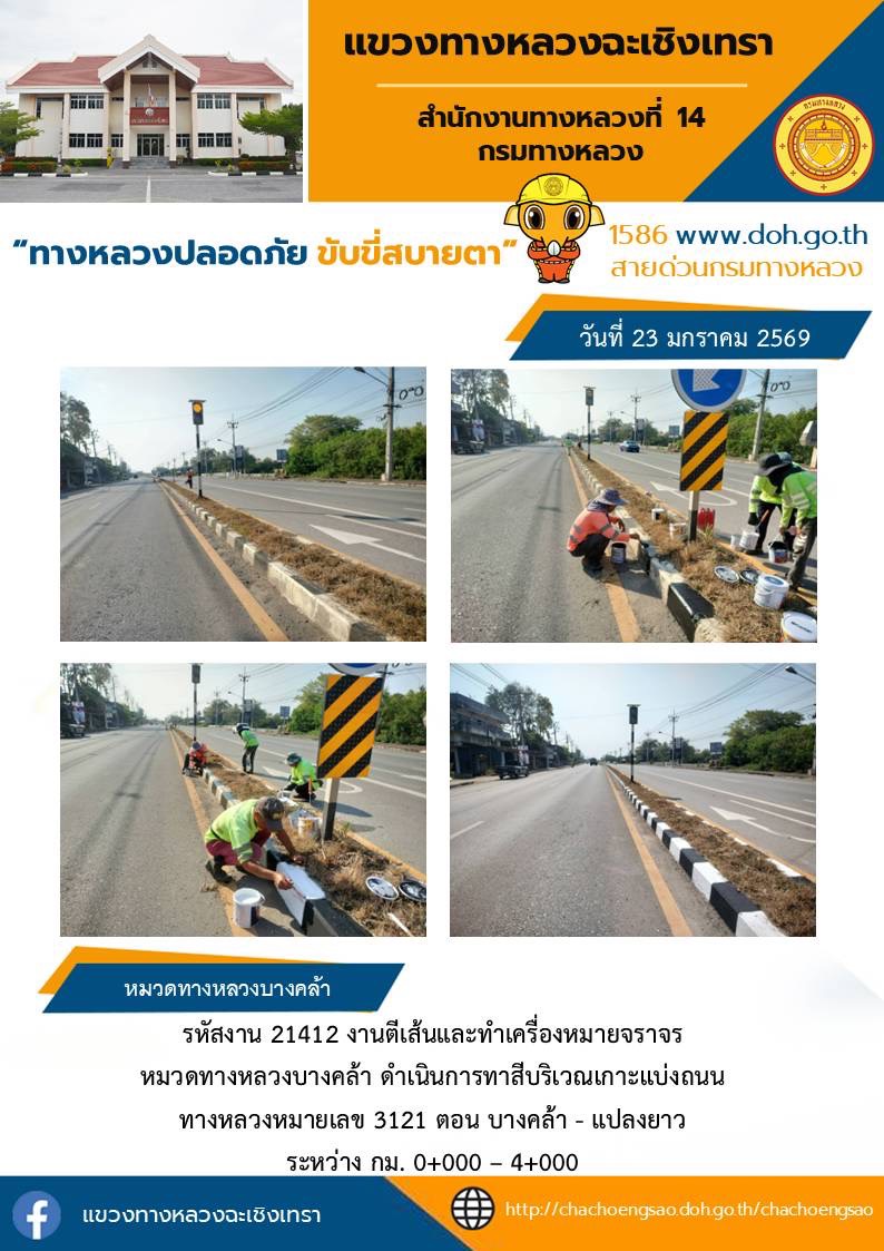 งานตีเส้นเเละทำเครื่องหมายจราจร |