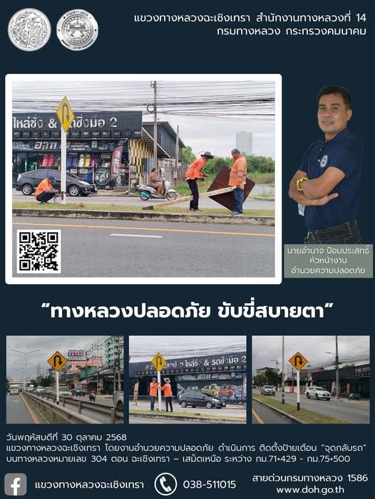 ติดตั้งป้ายเตือน “จุดกลับรถ” |