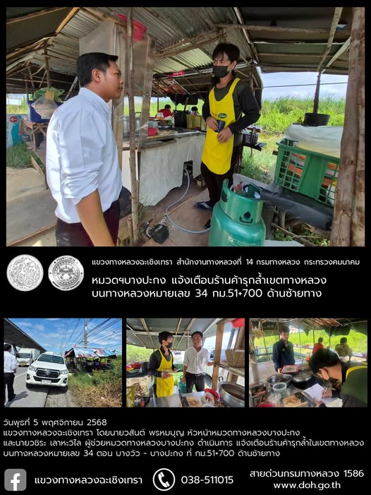 แจ้งเตือนร้านค้ารุกล้ำในเขตทางหลวง |