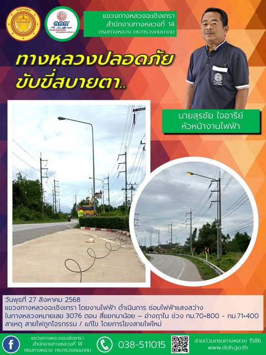 ติดตั้งเสาหลักจราจรล้มลุก |