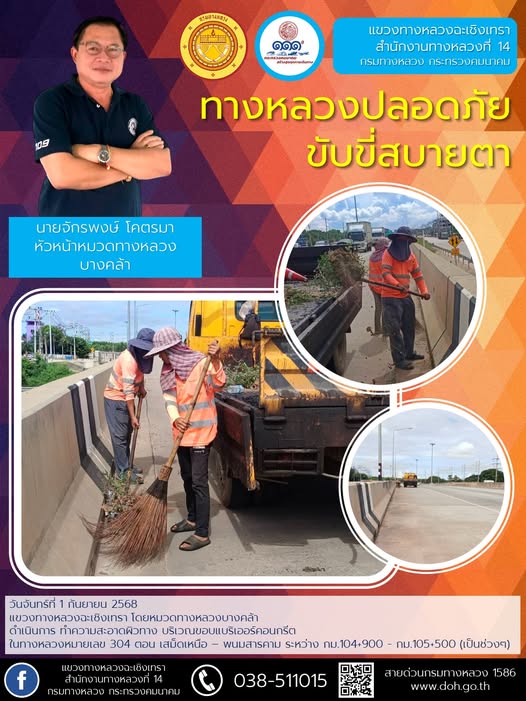 เปิดทางระบายน้ำที่ท่วมขังบนผิวทาง |