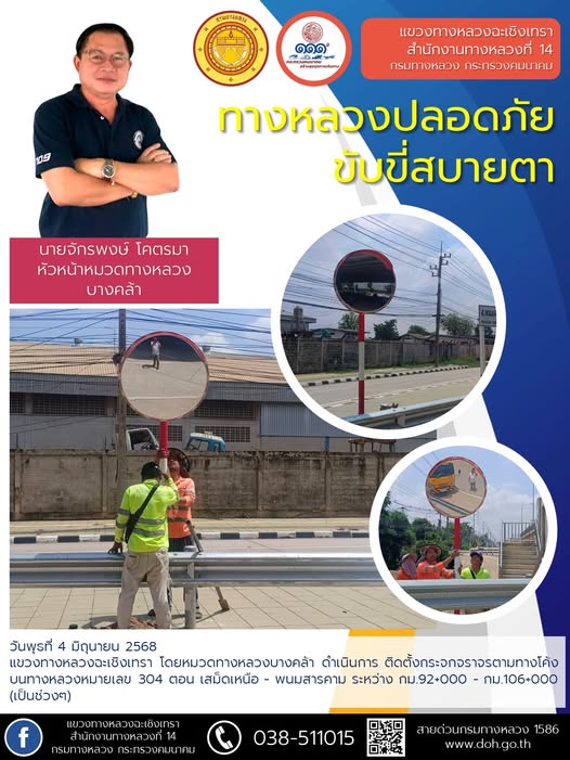 ติดตั้งกระจกจราจรตามทางโค้ง |