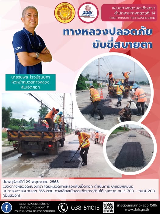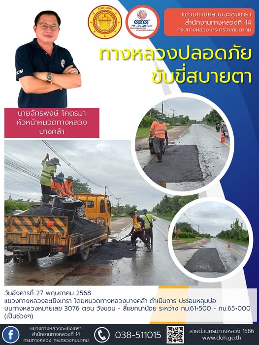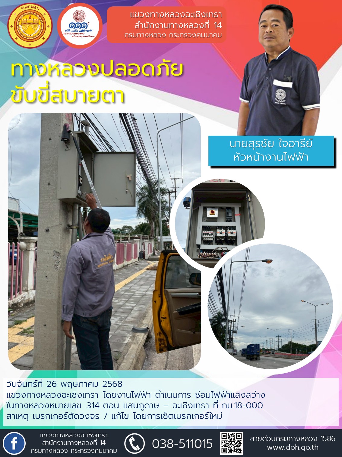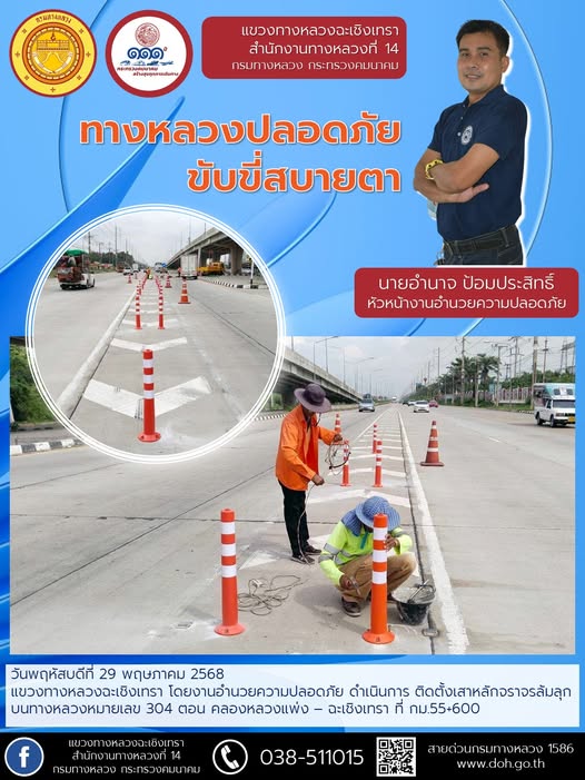 ติดตั้งเสาหลักจราจรล้มลุก |