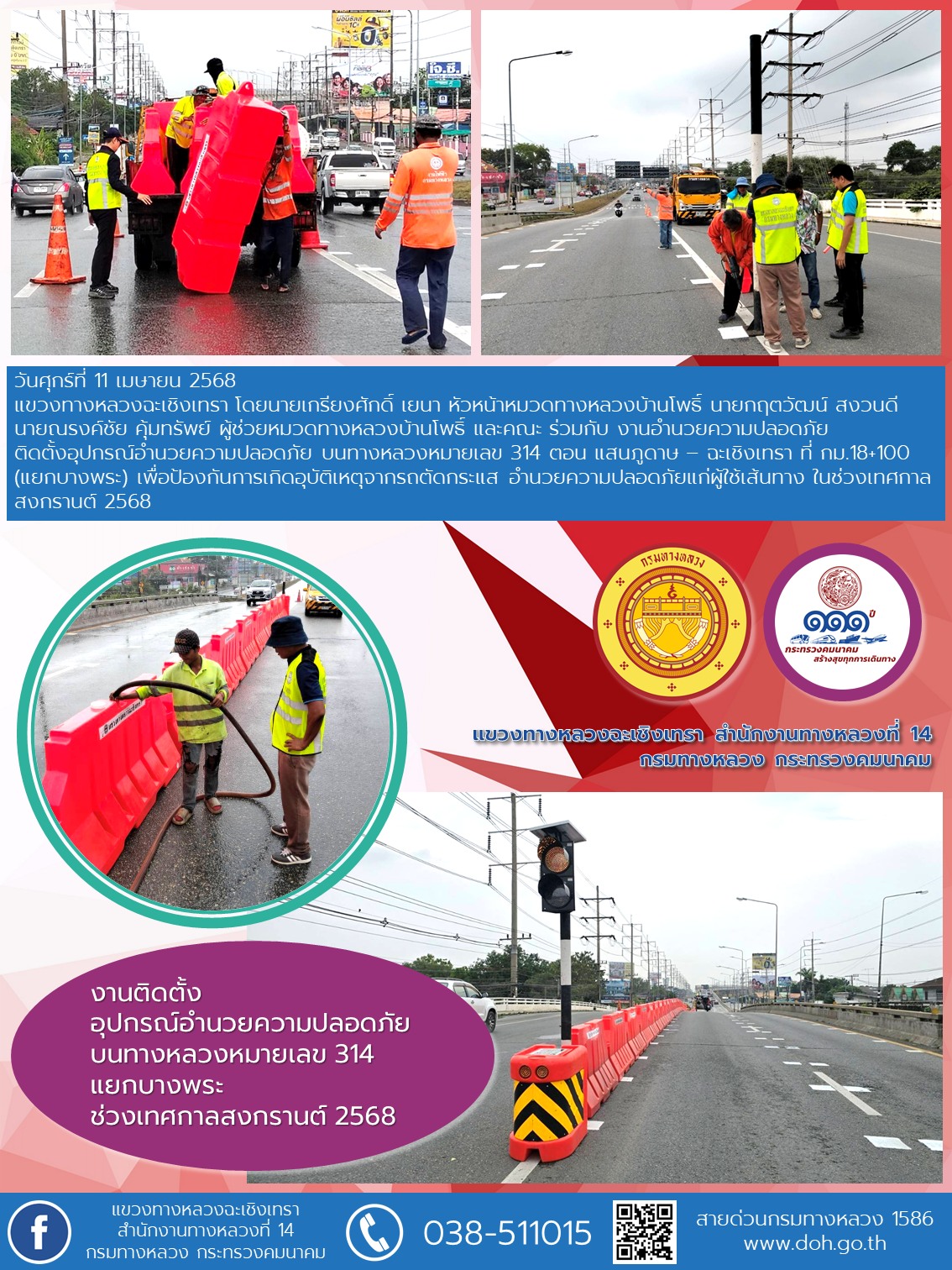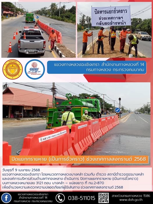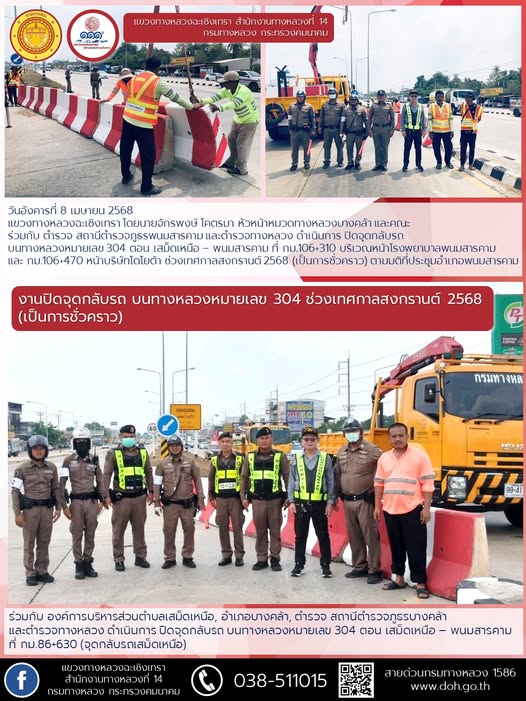 ปิดจุดกลับรถ บนทางหลวงหมายเลข 304 ช่วงเทศกาลสงกรานต์ 2568 |