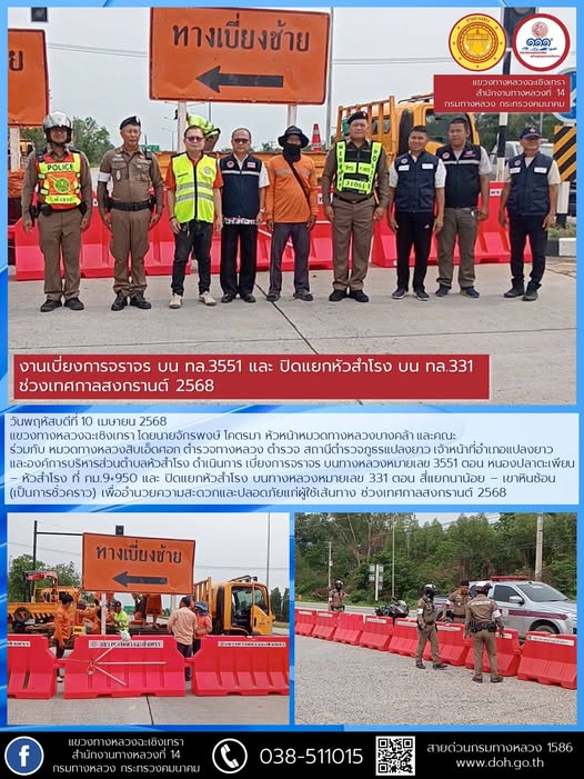 เบี่ยงการจราจร บน ทล.3551 และ ปิดแยกหัวสำโรง บน ทล.331 รับเทศกาลสงกรานต์ 2568 |