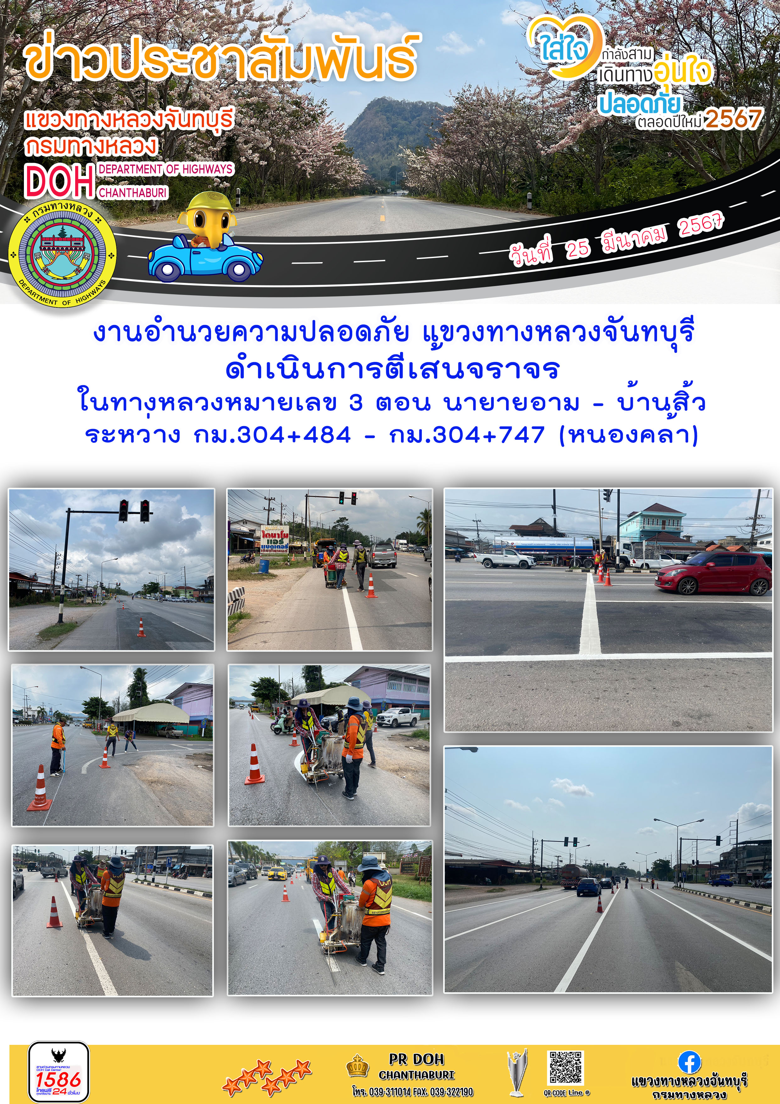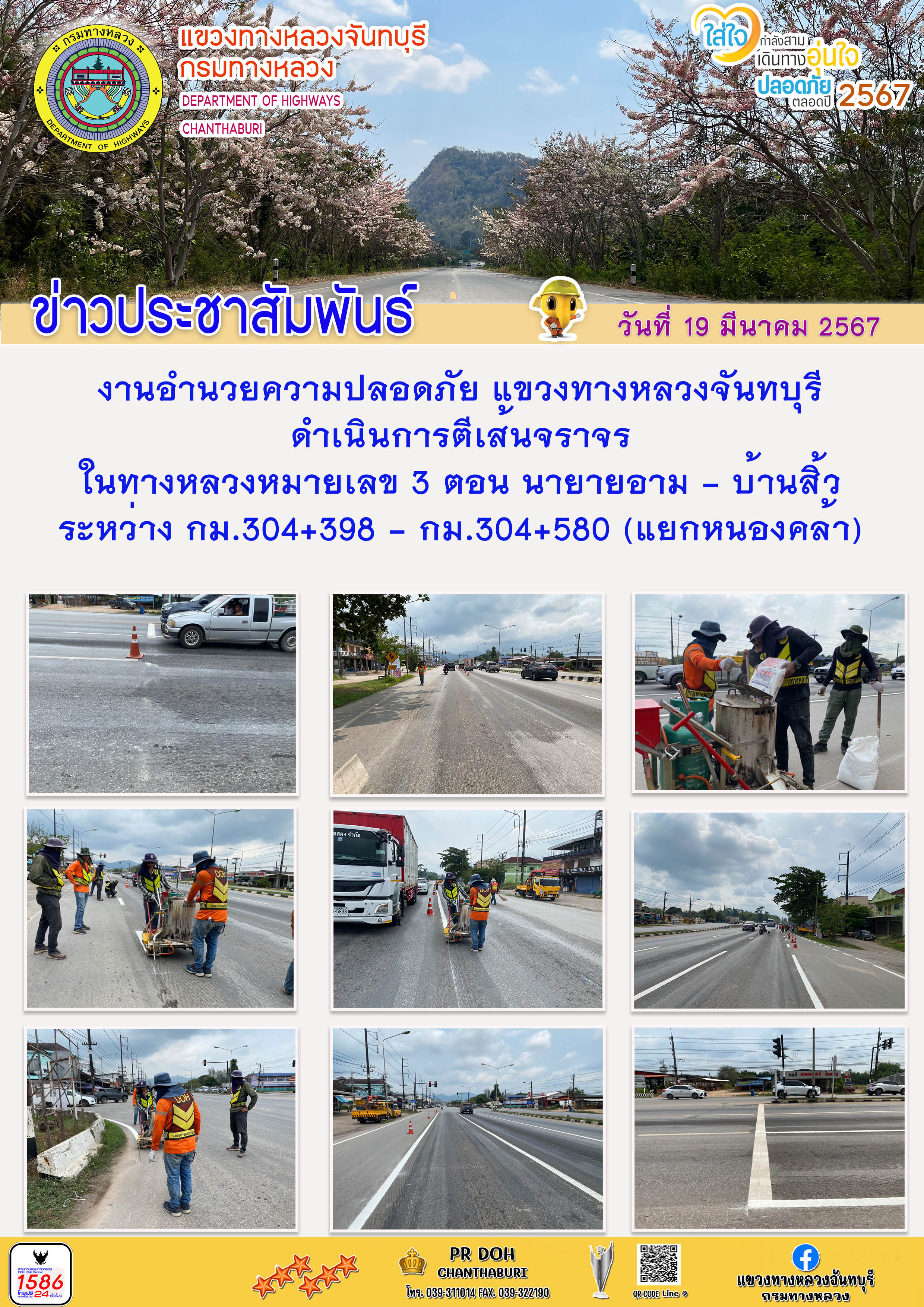 งานอำนวยความปลอดภัย แขวงทางหลวงจันทบุรี ดำเนินการตีเส้นจราจรในทางหลวงหมายเลข 3