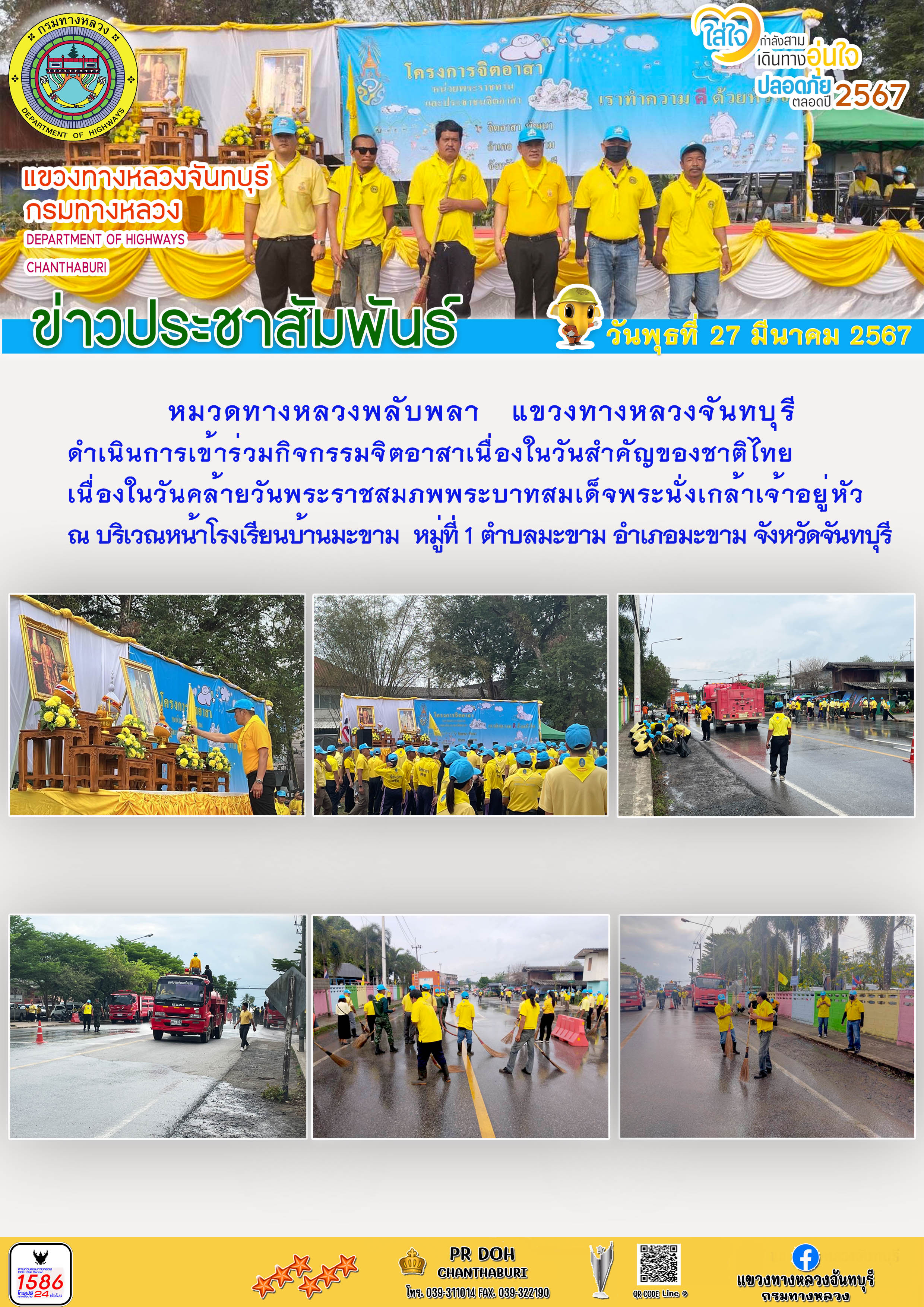 หมวดทางหลวงพลับพลา แขวงทางหลวงจันทบุรี ดำเนินการเข้าร่วมกิจกรรมจิตอาสาเนื่องในวันสำคัญของชาติไทย