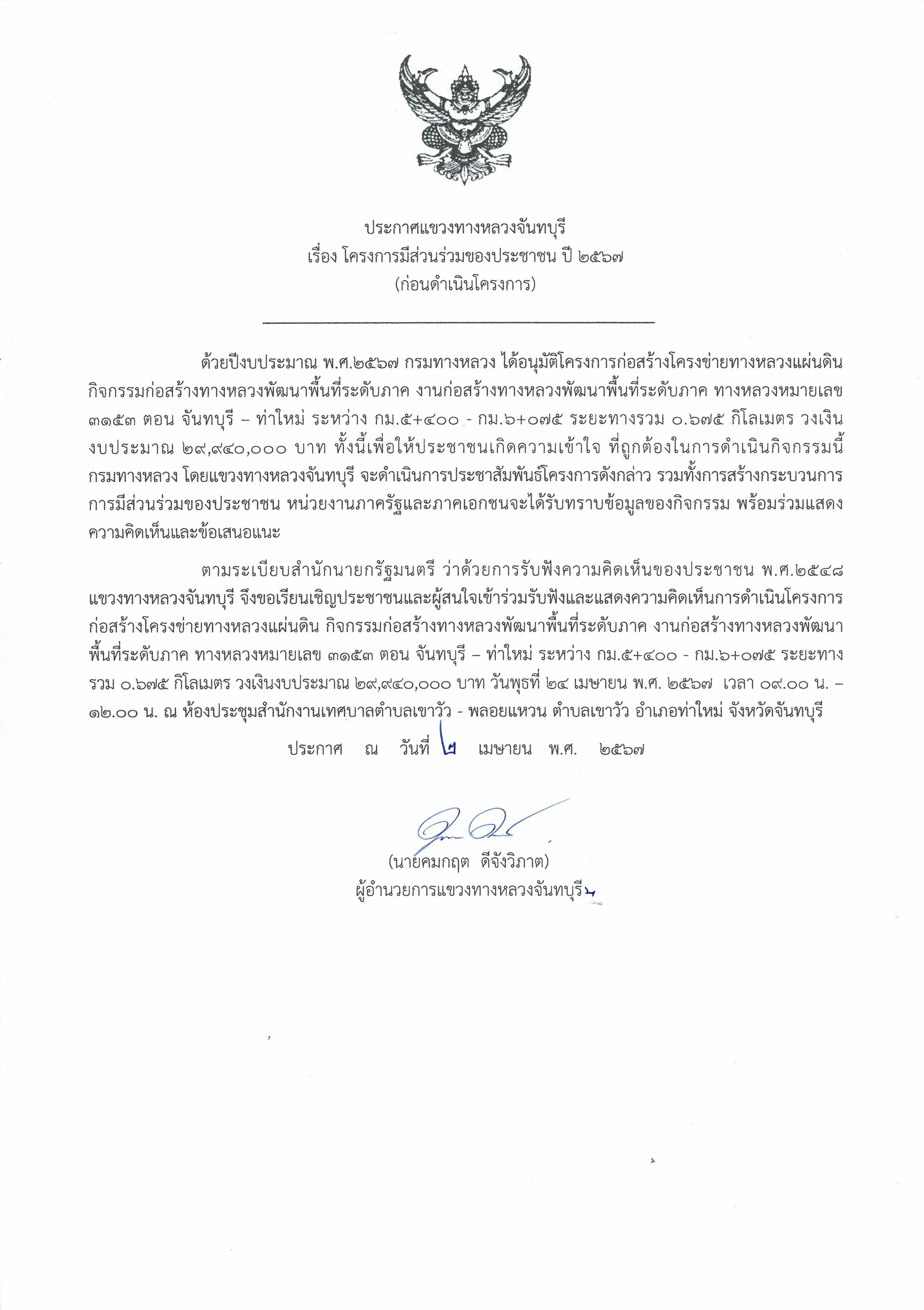 โครงการมีส่วนร่วมของประชาชน ทางหลวงหมายเลข 3153