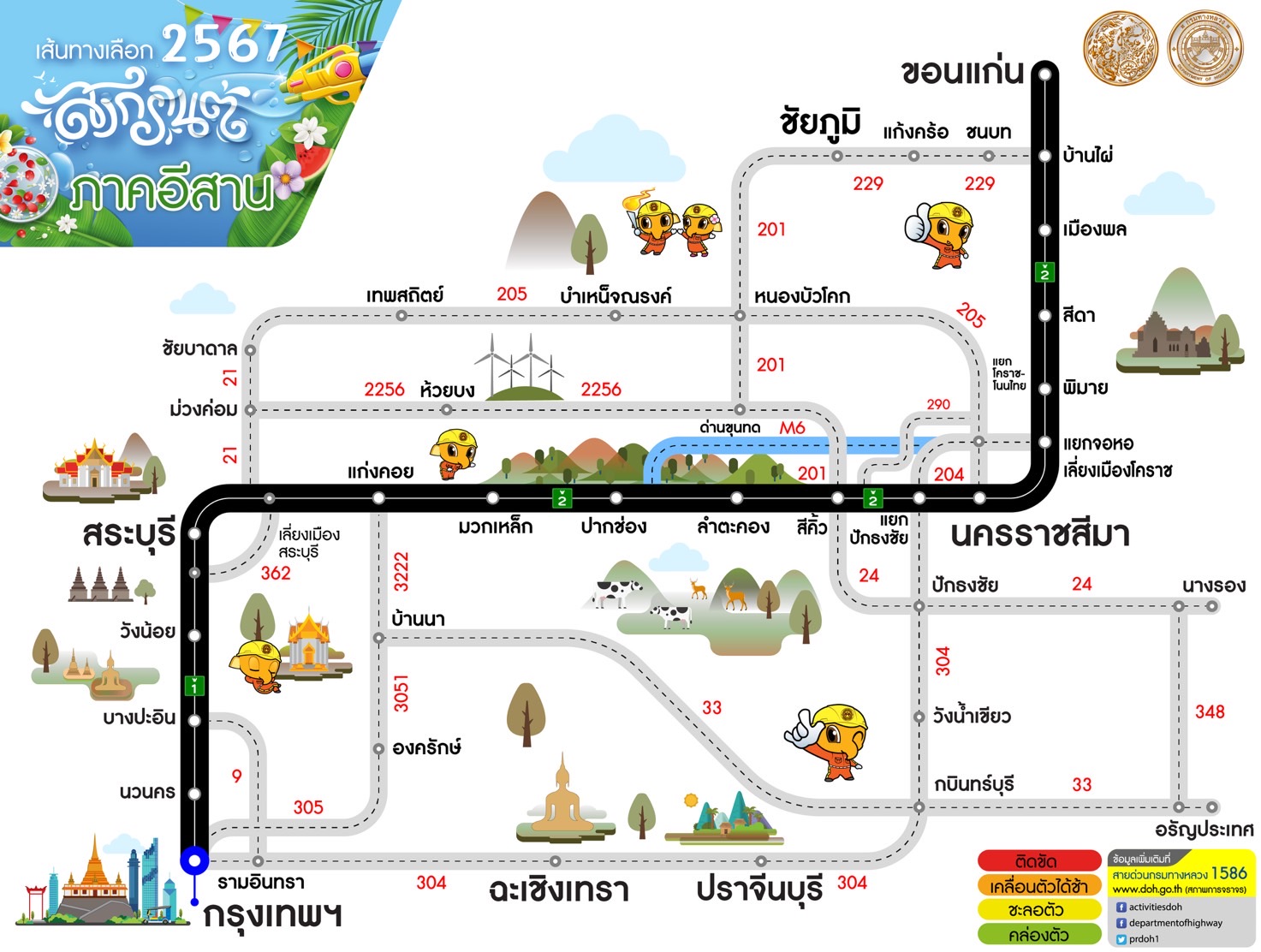 กรมทางหลวงแนะนำเส้นทางเลือกช่วง สงกรานต์ 2567