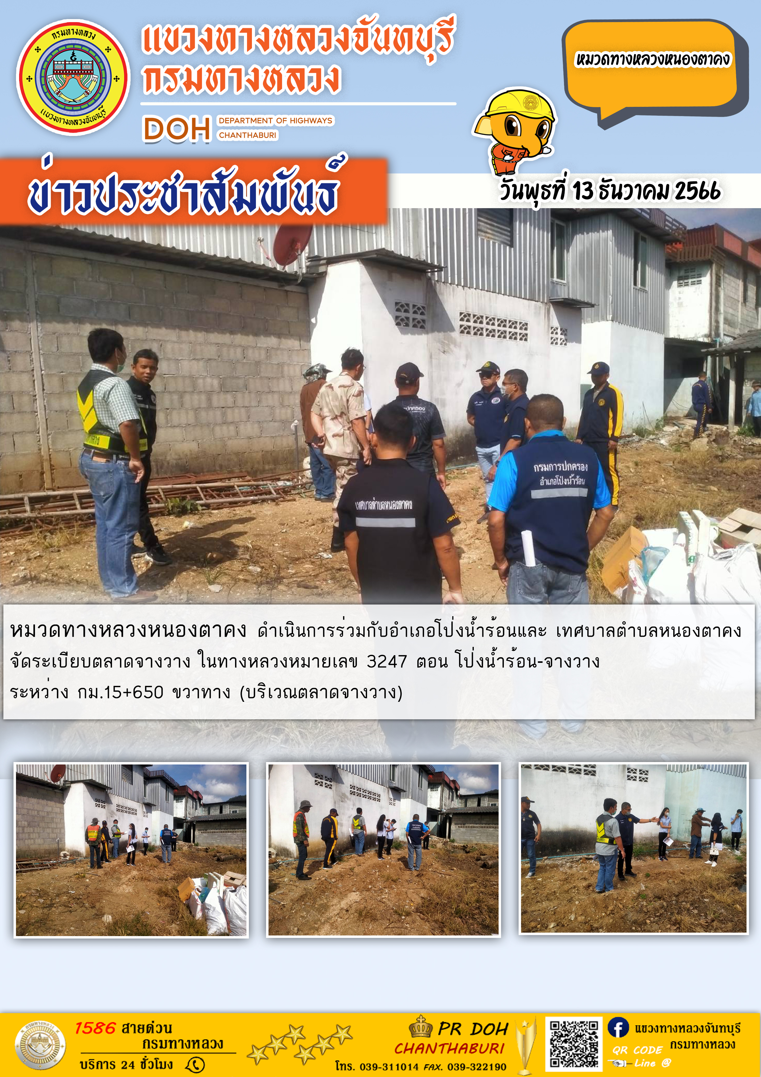 ดำเนินการร่วมกับอำเภอโป่งน้ำร้อนและเทศบาลตำบลหนองตาคง จัดระเบียบตลาดจางวาง ในทางหลวงหมายเลข 3247