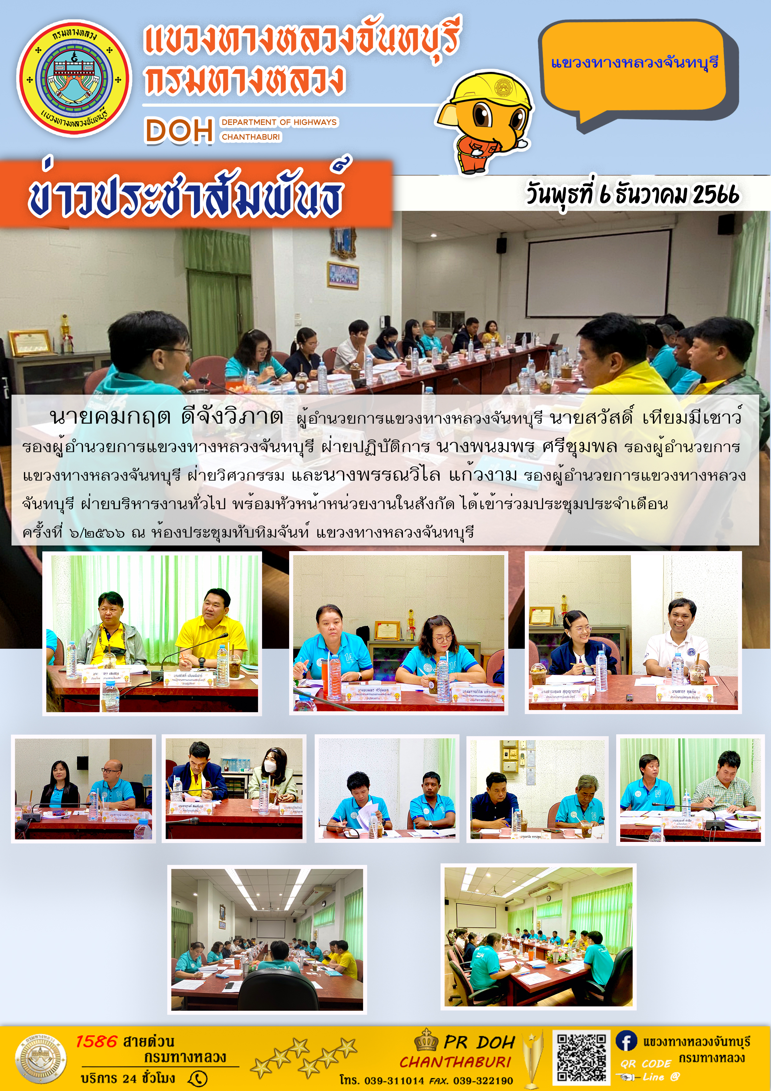 แขวงทางหลวงจันทบุรี ได้เข้าร่วมประชุมประจำเดือน ครั้งที่ 6/2566