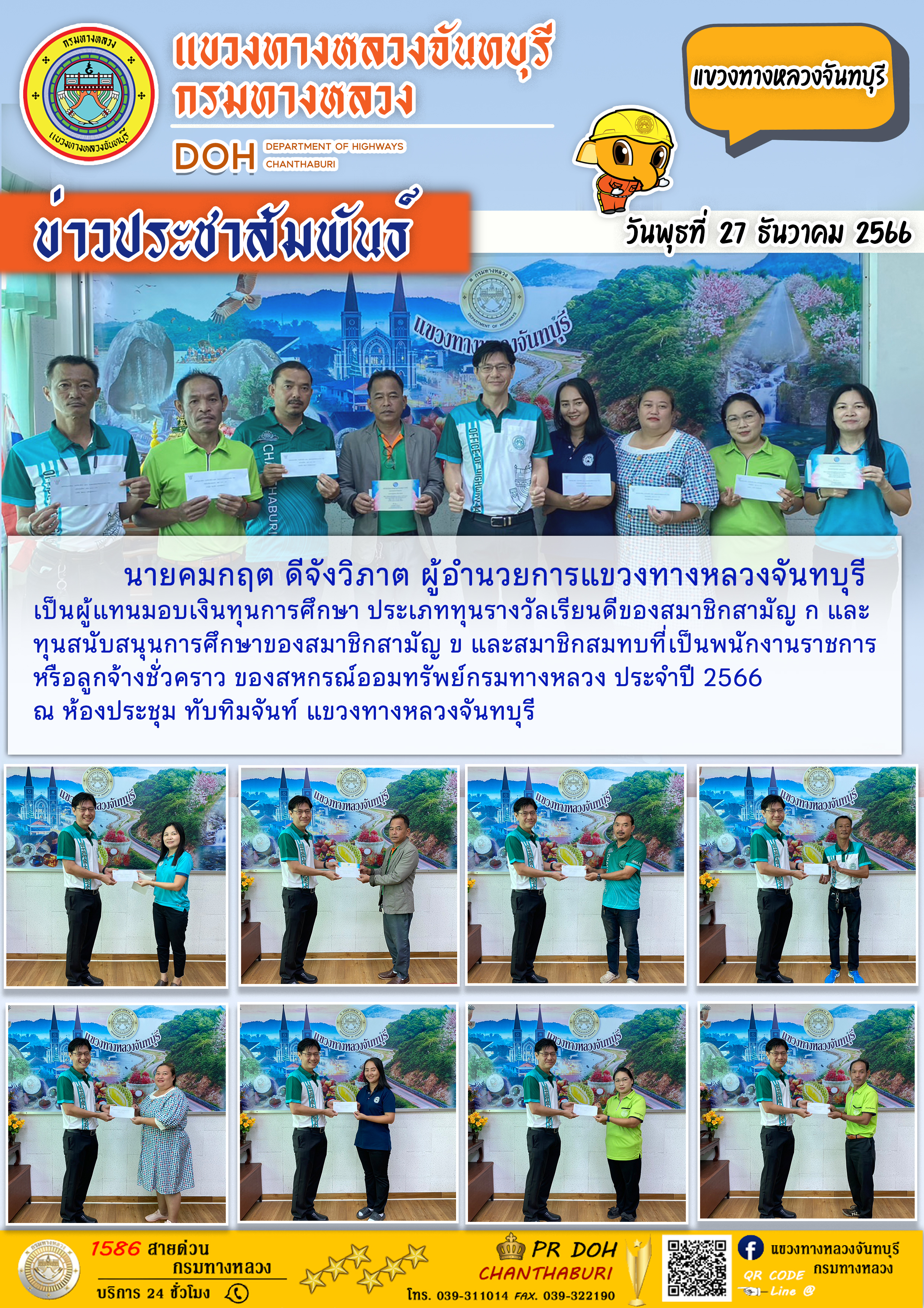 มอบทุนการศึกษาให้บุตรสมาชิกสหกรณ์ออมทรัพย์ กรมทางหลวง ประจำปี 2566
