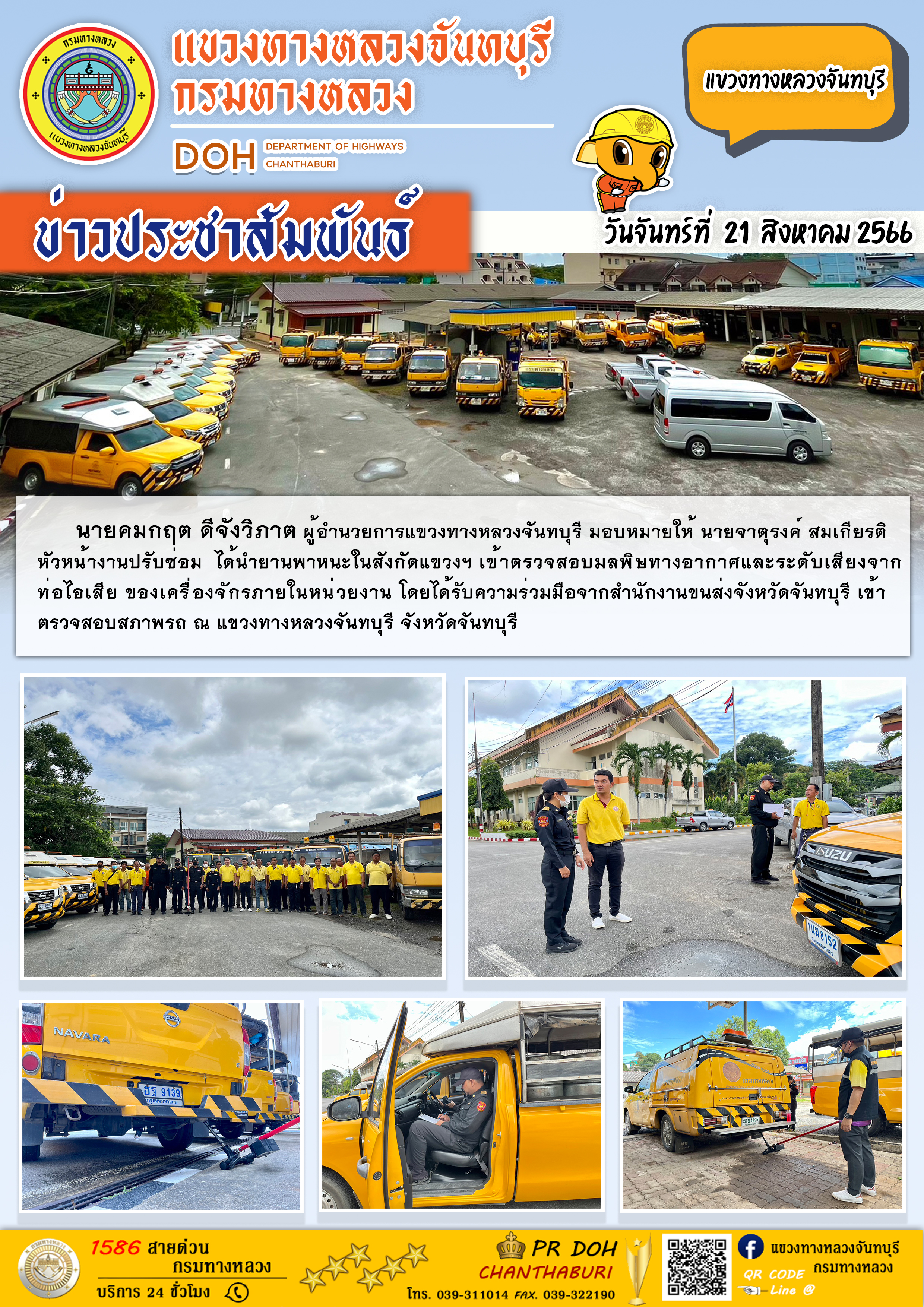 แขวงทางหลวงจันทบุรี เข้าตรวจสอบมลพิษทางอากาศและระดับเสียงจากท่อไอเสีย ของเครื่องจักรภายในหน่วยงาน