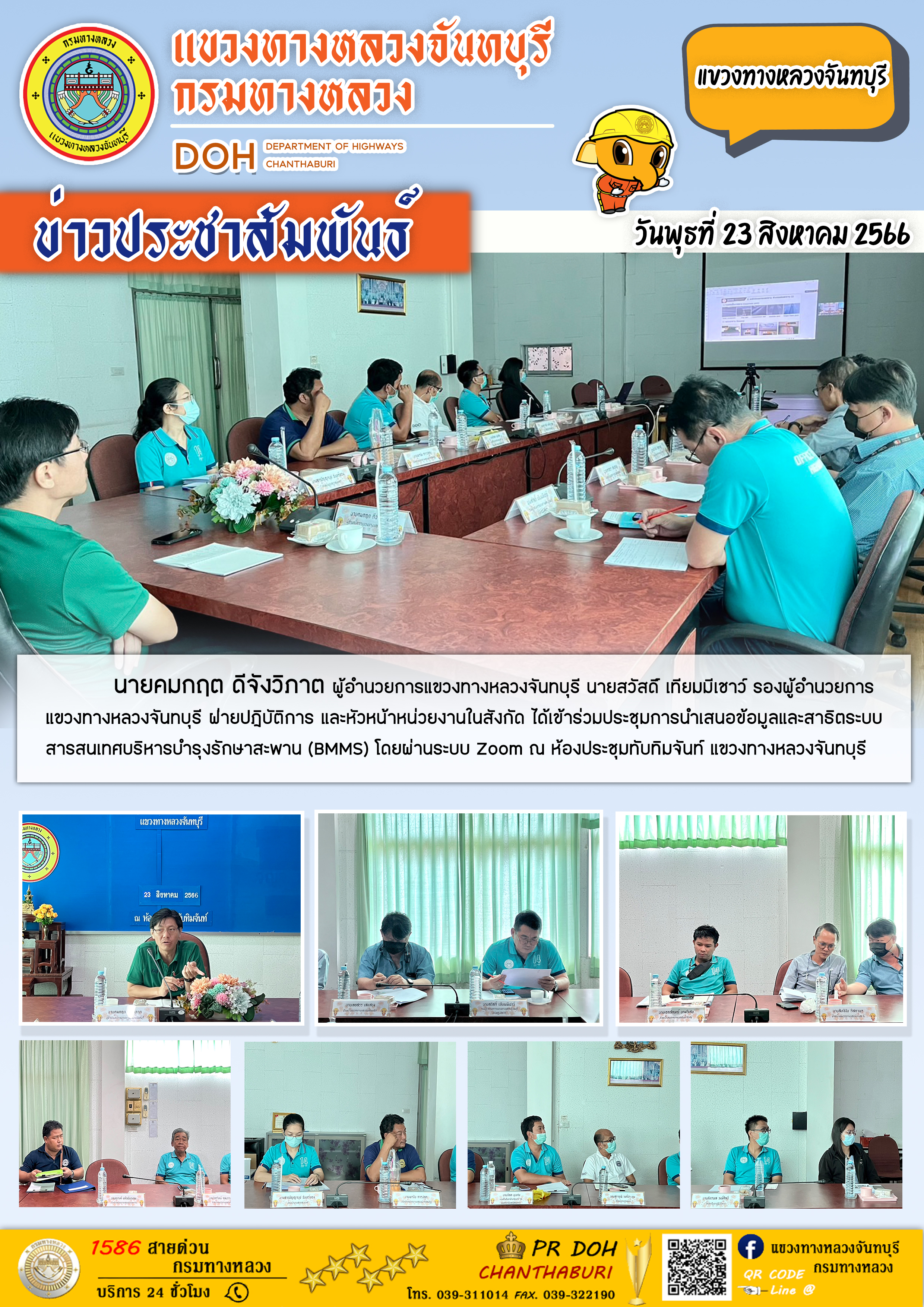 แขวงทางหลวงจันทบุรี ได้เข้าร่วมประชุมการนำเสนอข้อมูลและสาธิตระบบสารสนเทศบริหารบำรุงรักษาสะพาน (BMMS)