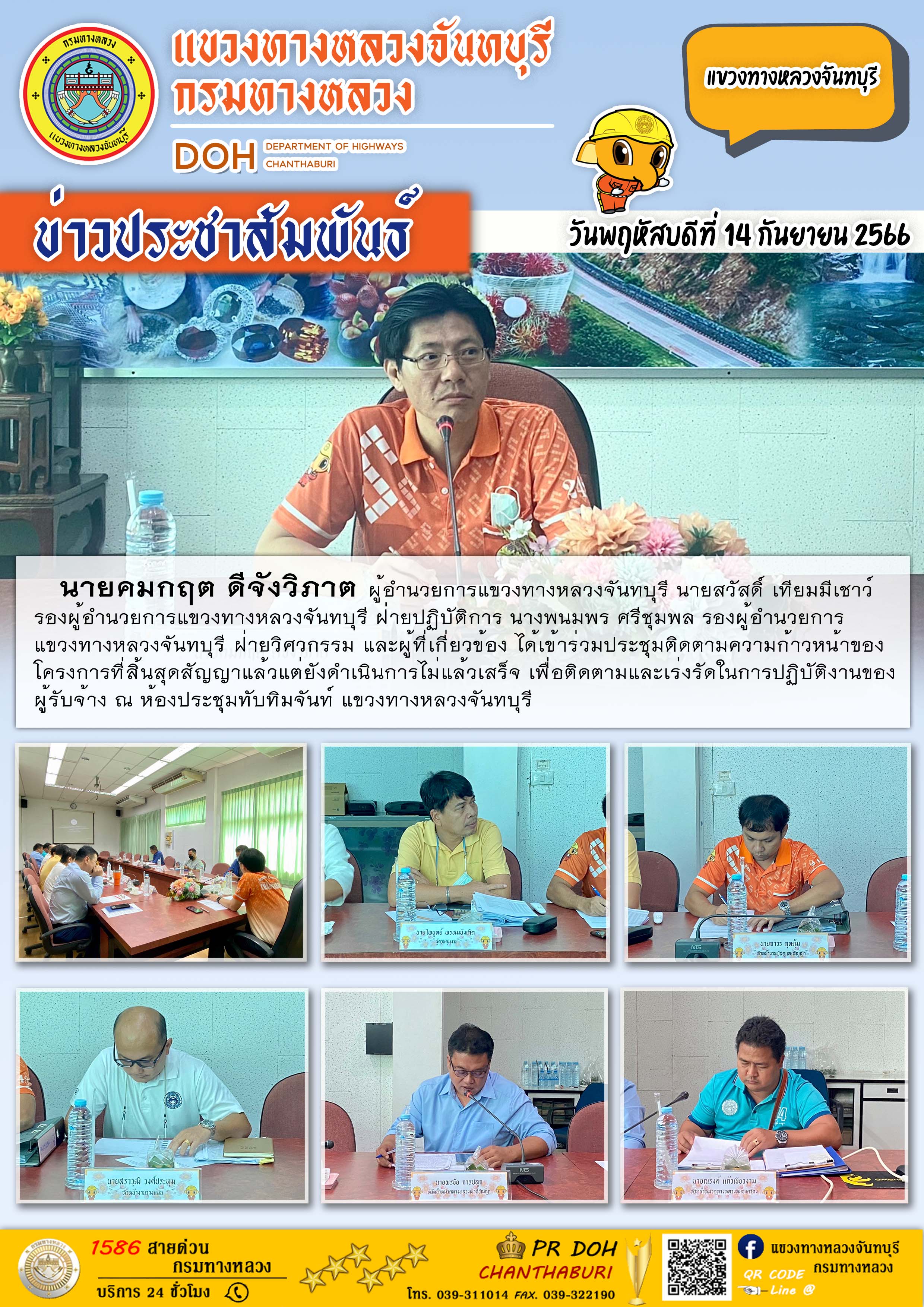 นายคมกฤต ดีจังวิภาต ผู้อำนวยการแขวงทางหลวงจันทบุรี ได้เข้าร่วมประชุมติดตามความก้าวหน้าของโครงการที่สิ้นสุดสัญญาแล้วแต่ยังดำเนินการไม่แล้วเสร็จ