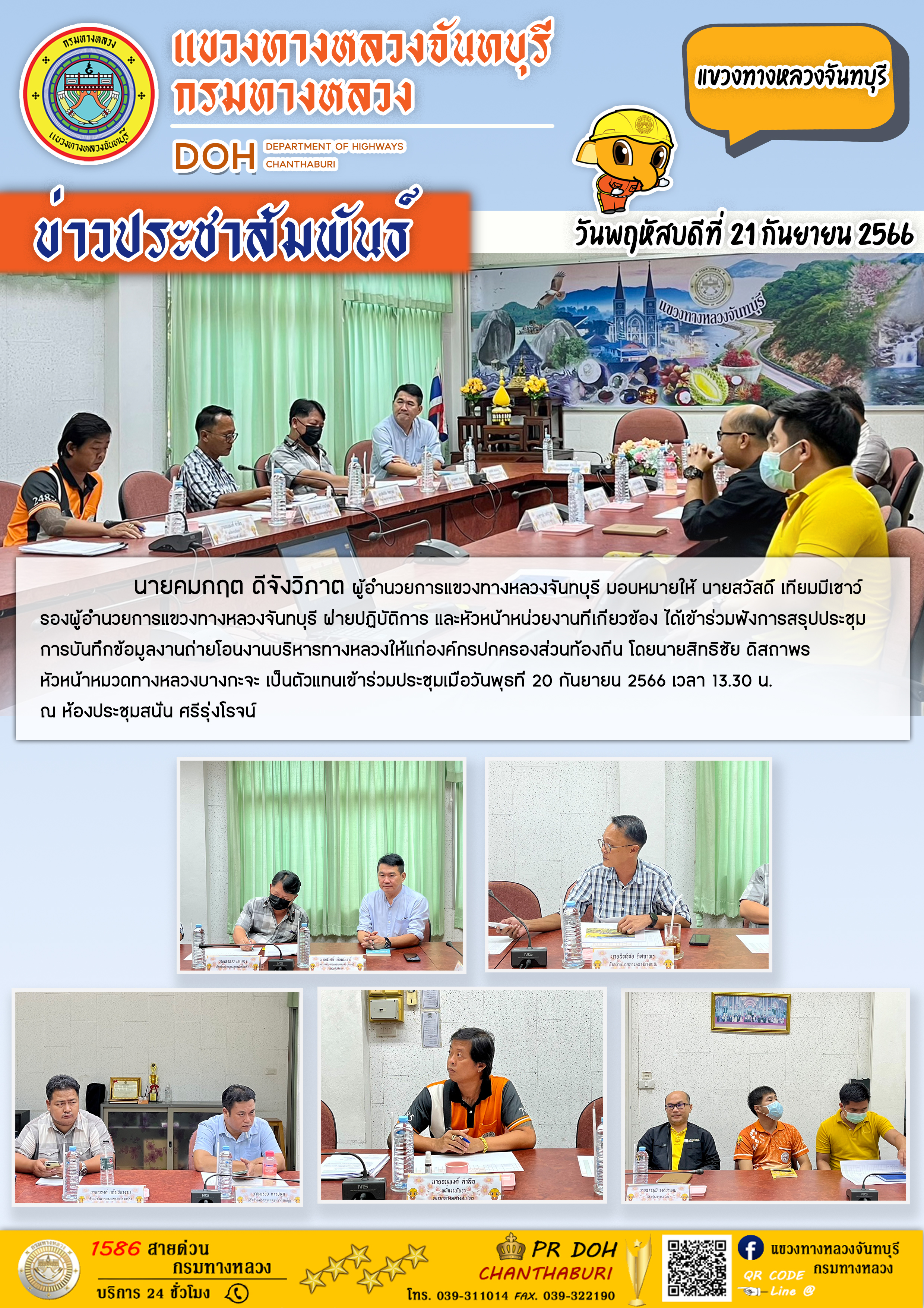 แขวงทางหลวงจันทบุรี ได้เข้าร่วมประชุมประจำเดือนครั้งที่ 4/2566