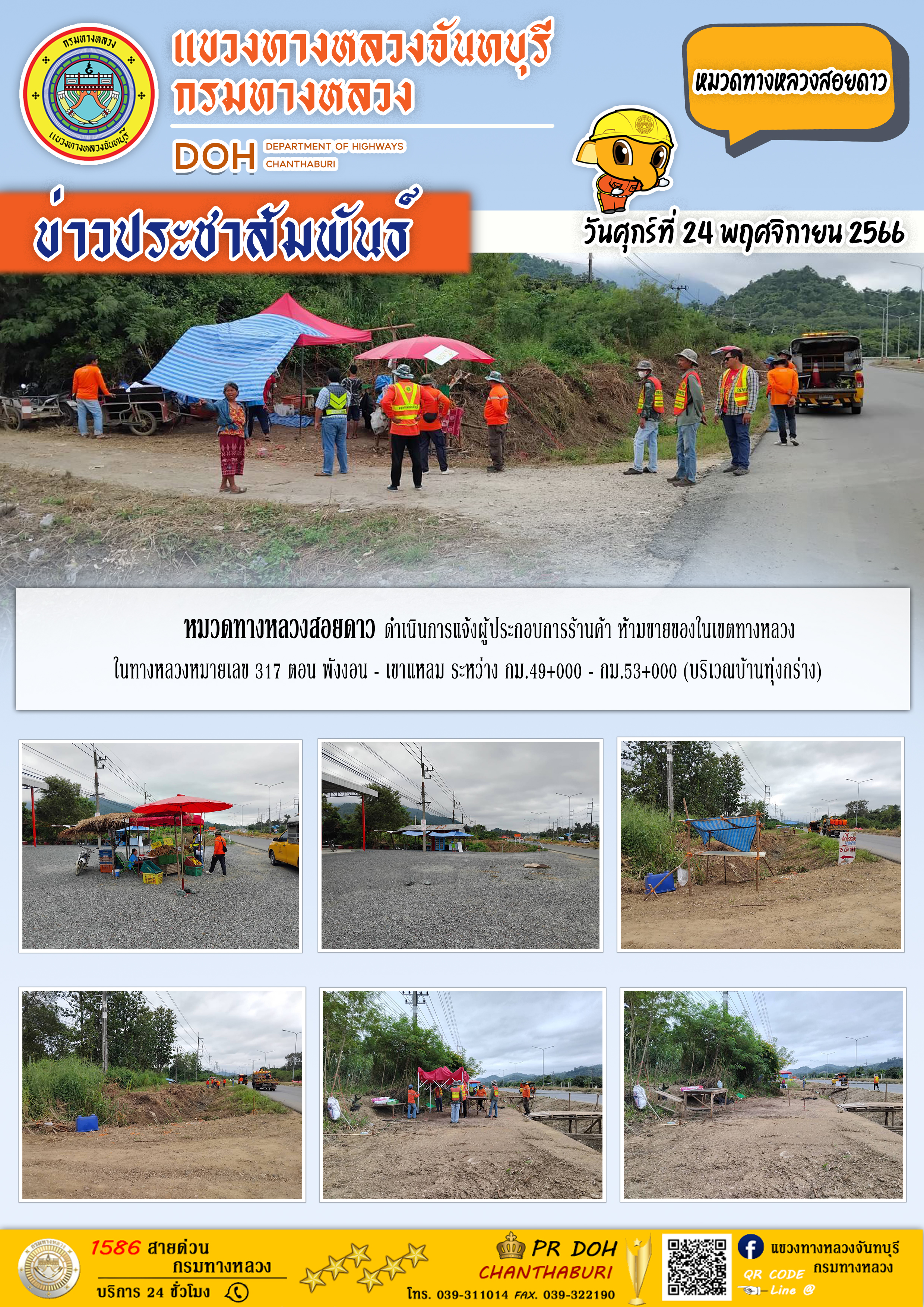 แขวงทางหลวงจันทบุรี หมวดทางหลวงสอยดาว ดำเนินการแจ้ง?ผู้ประกอบการร้านค้า ห้ามขายของในเขตทางหลวง