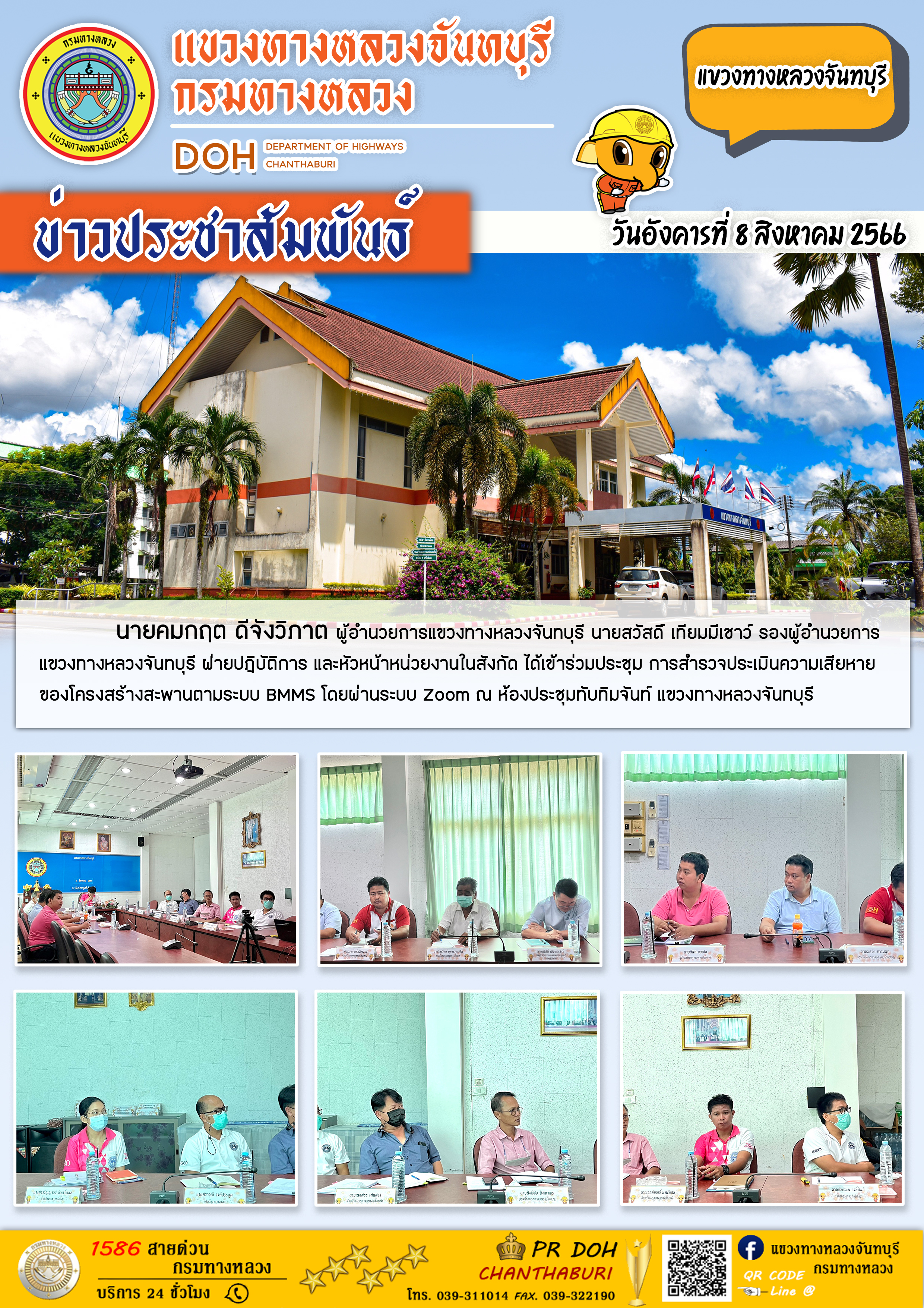 247 08/08/2566 แขวงทางหลวงจันทบุรี ได้เข้าร่วมประชุม การสำรวจประเมินความเสียหาย ของโครงสร้างสะพานตามระบบ BMMS