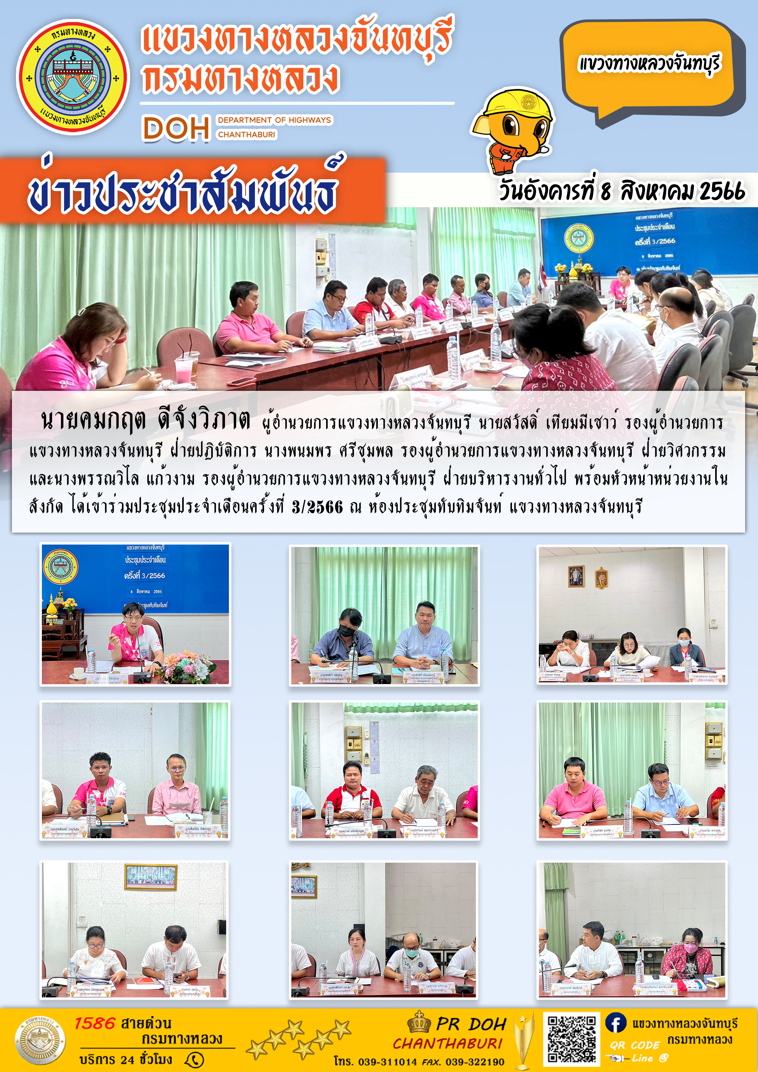 246 08/08/2566 แขวงทางหลวงจันทบุรี ประชุมประจำเดือนครั้งที่ 3/2566