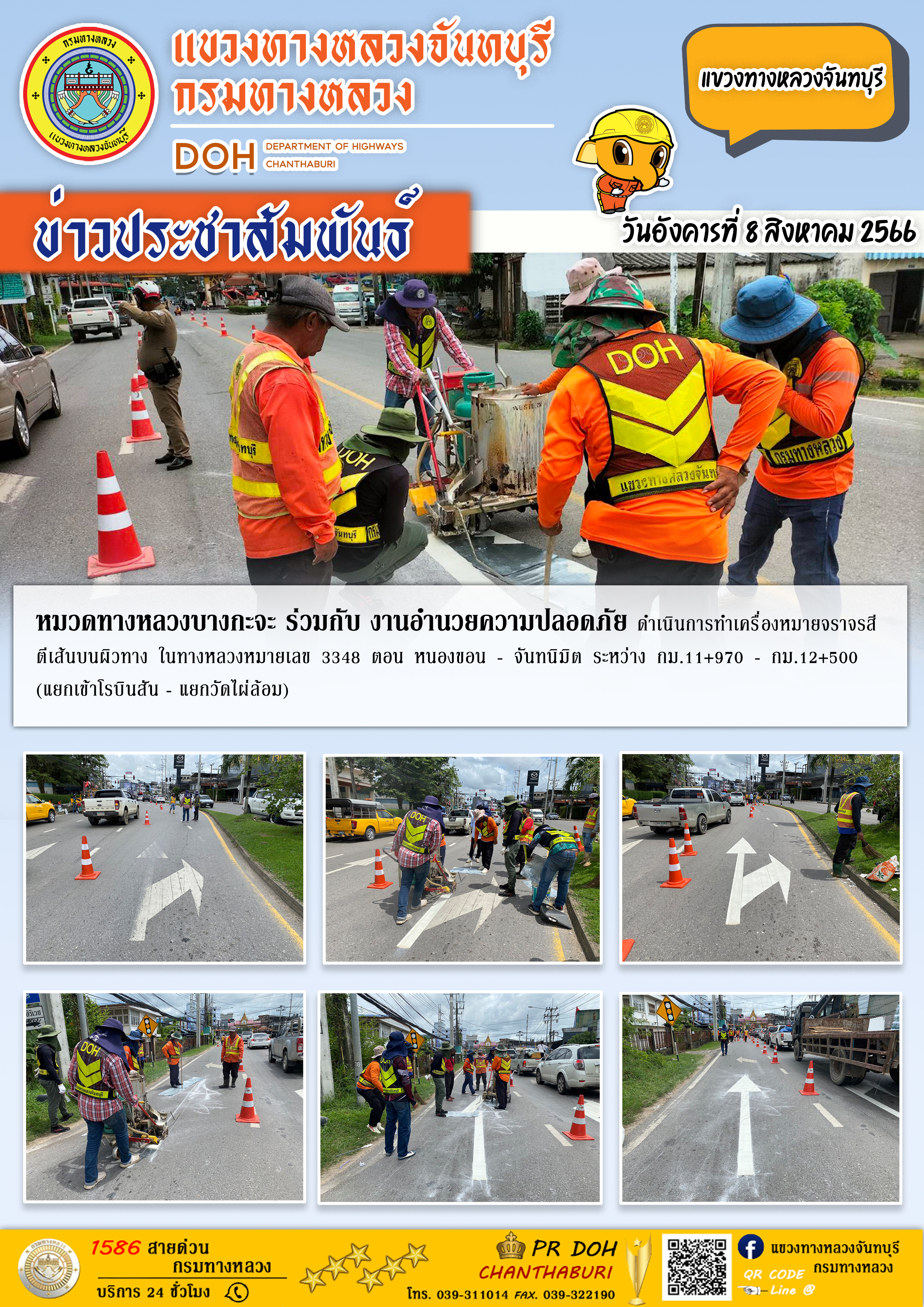 245 08/08/2566 หมวดทางหลวงบางกะจะ ร่วมกับ งานอำนวยความปลอดภัย ดำเนินการทำเครื่องหมายจราจรสีตีเส้นบนผิวทาง