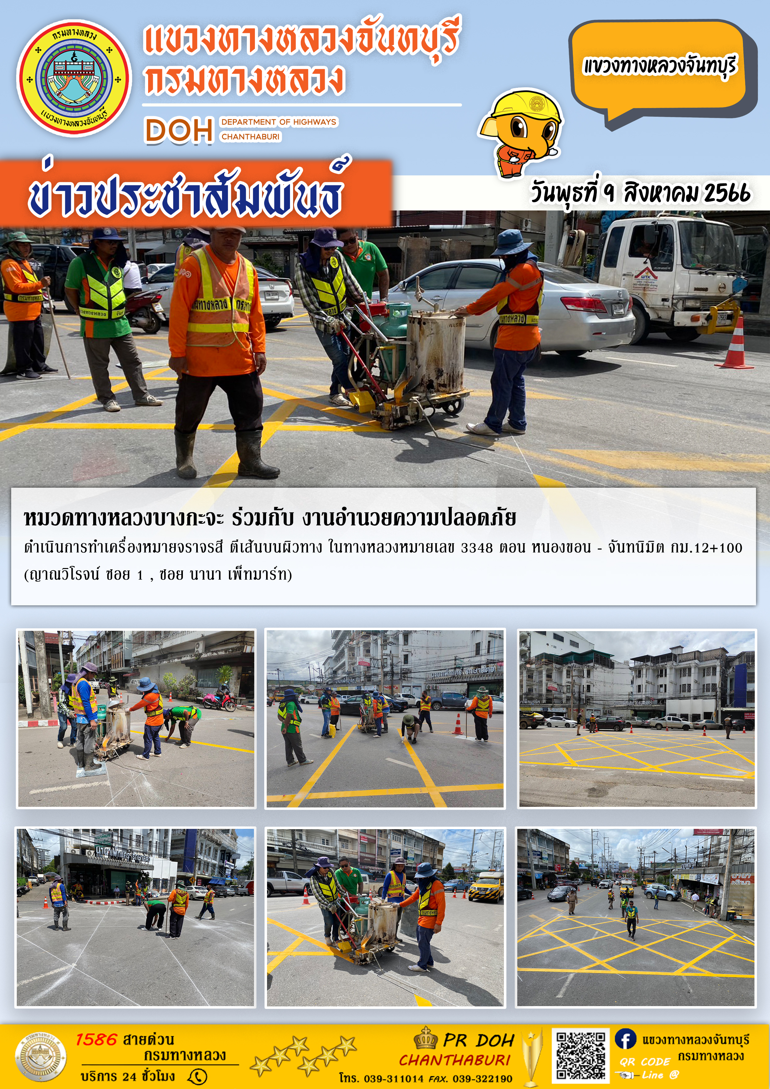 243 09/08/2566 หมวดทางหลวงบางกะจะ ร่วมกับ งานอำนวยความปลอดภัย ดำเนินการทำเครื่องหมายจราจรสี ตีเส้นบนผิวทาง