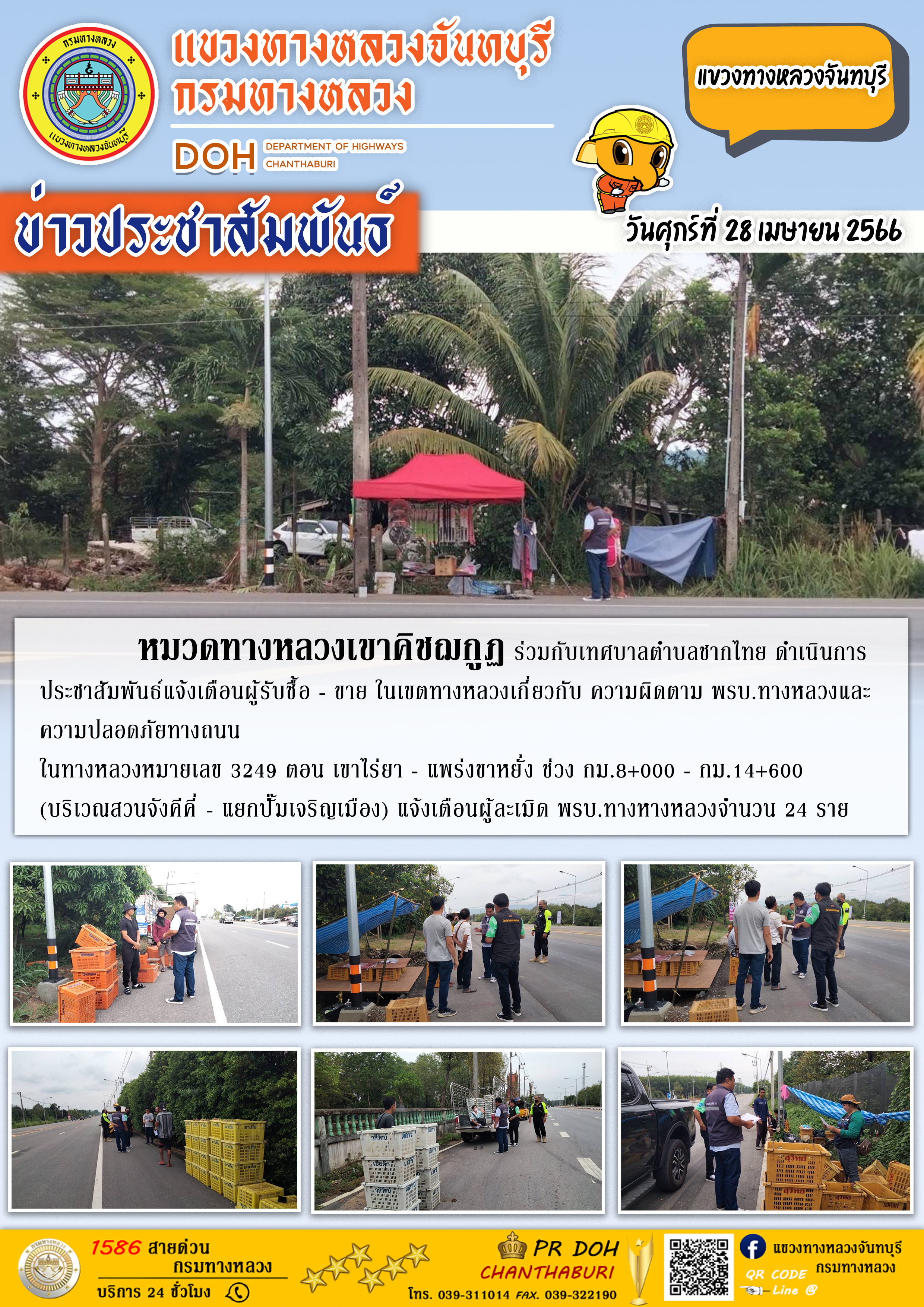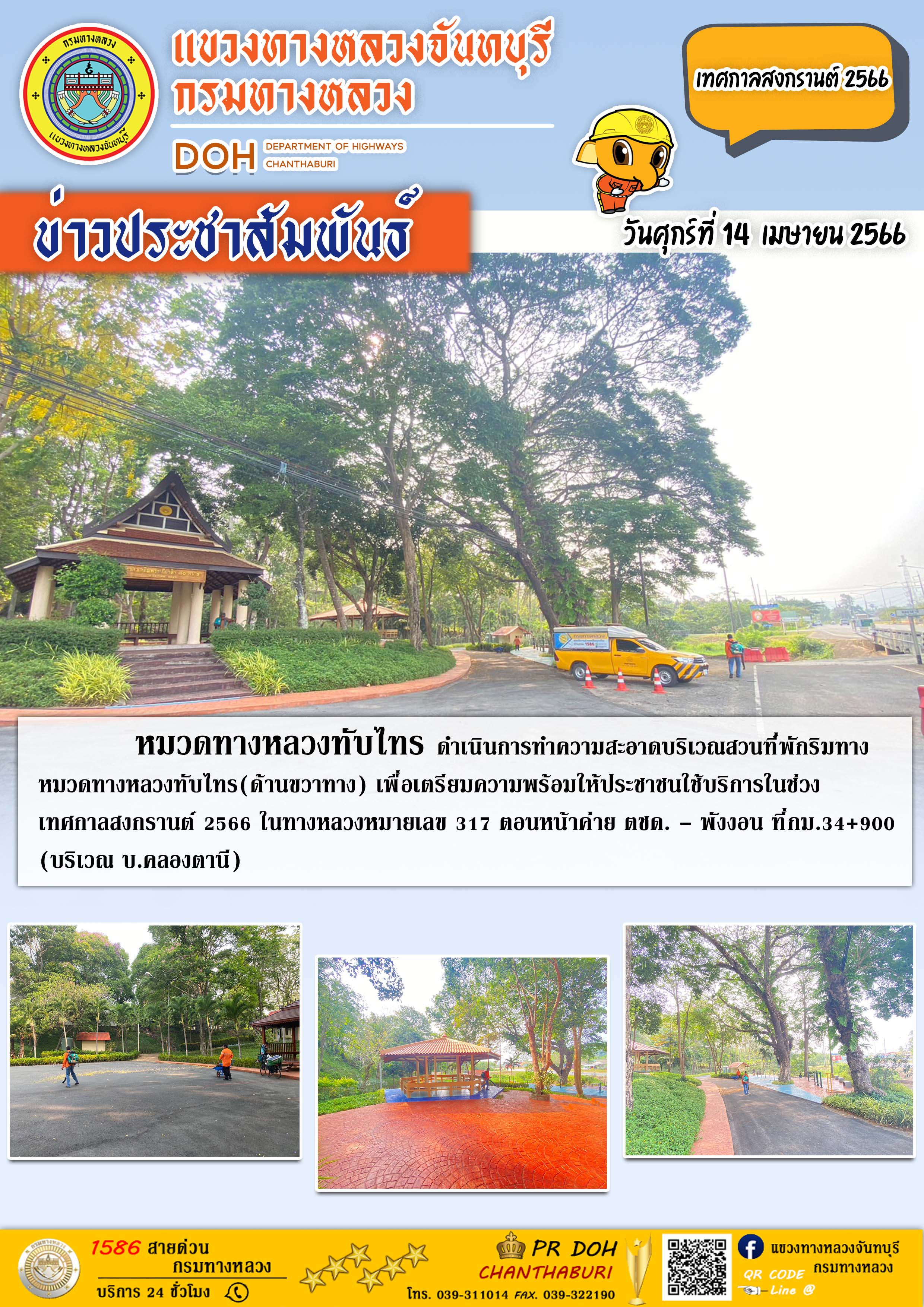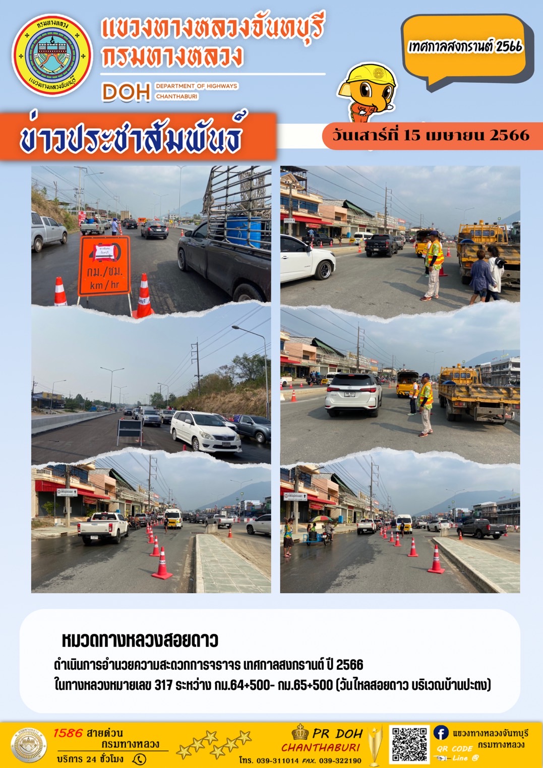 หมวดทางหลวงสอยดาว ดำเนินการอำนวยความสะดวกการจราจร เทศกาลสงกรานต์ ปี 2566