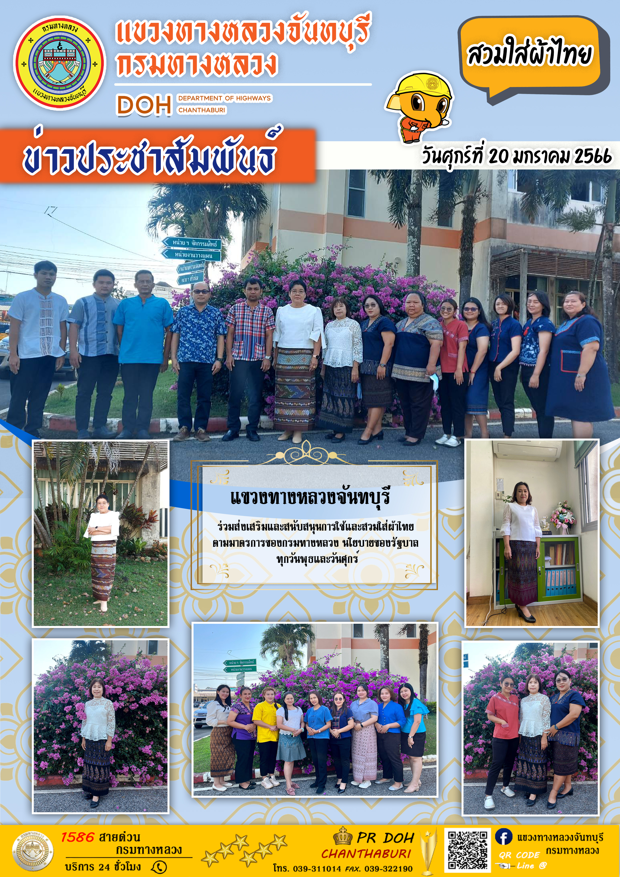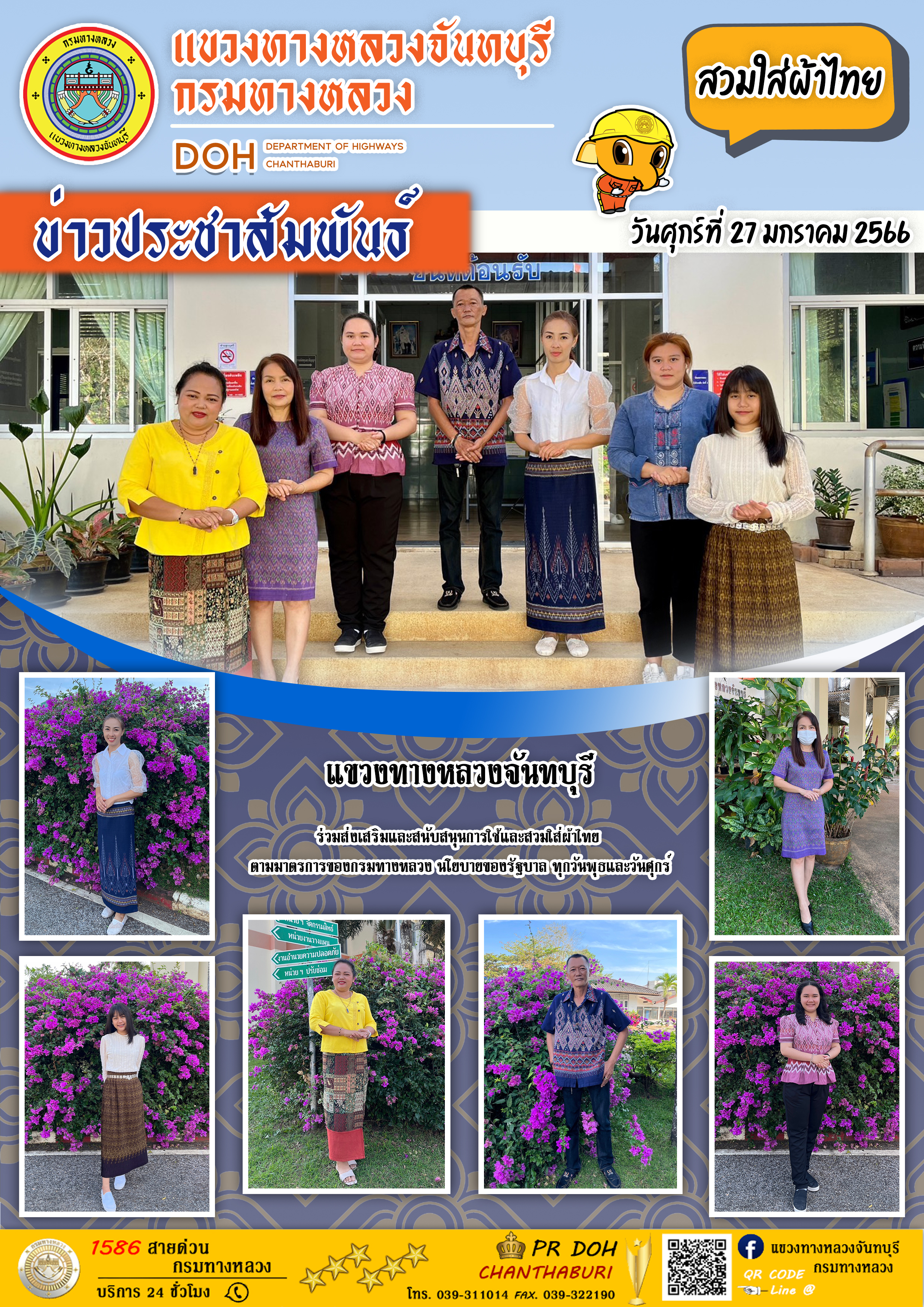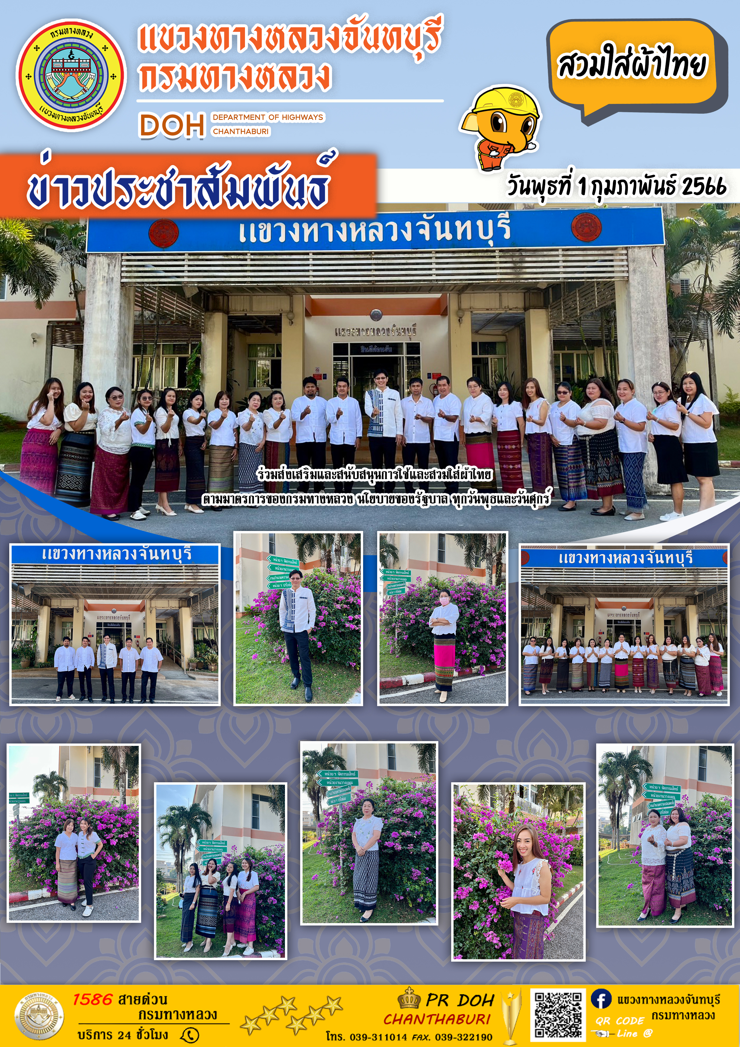 แขวงทางหลวงจันทบุรี ร่วมส่งเสริมและสนับสนุนการใช้และสวมใส่ผ้าไทย