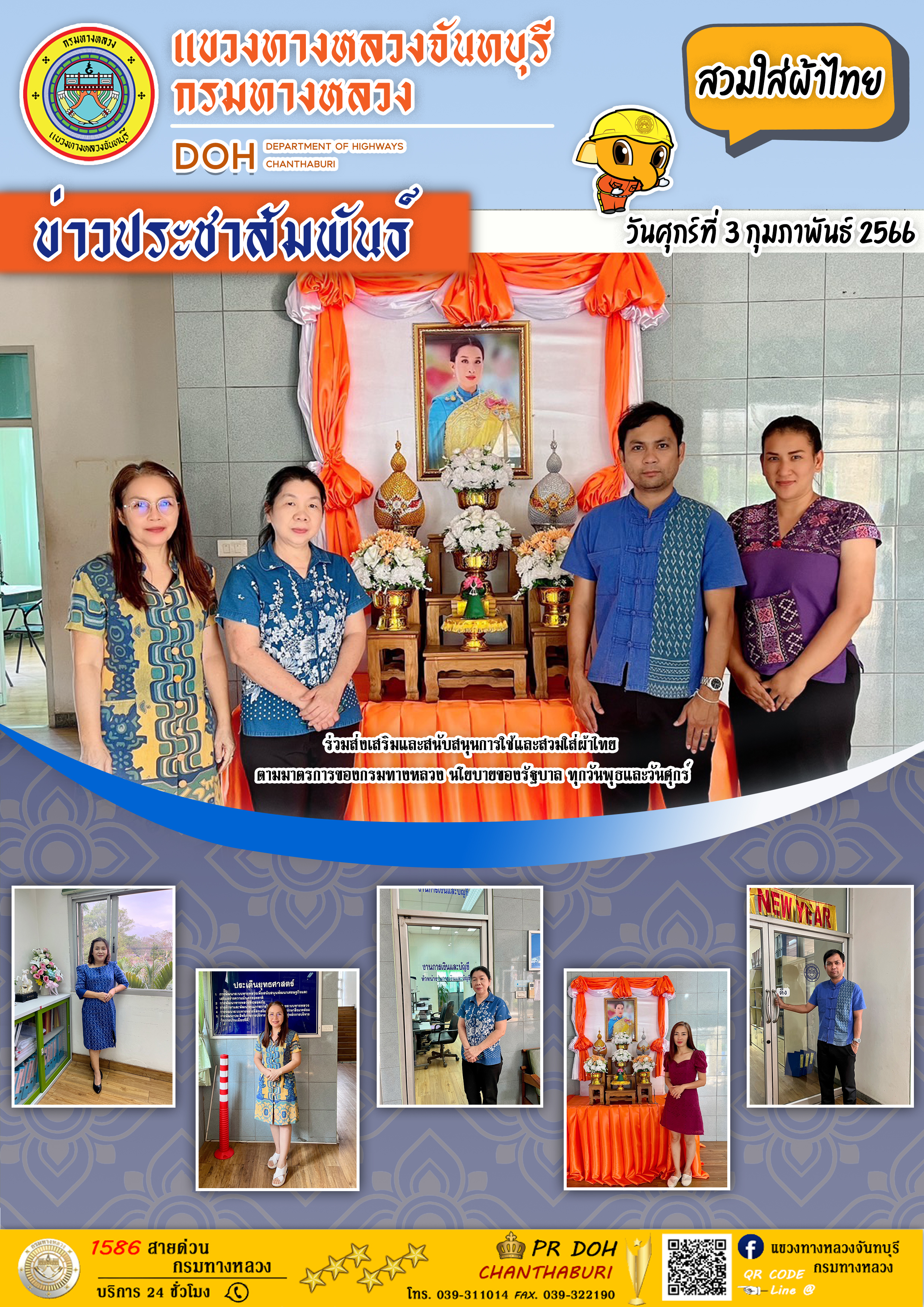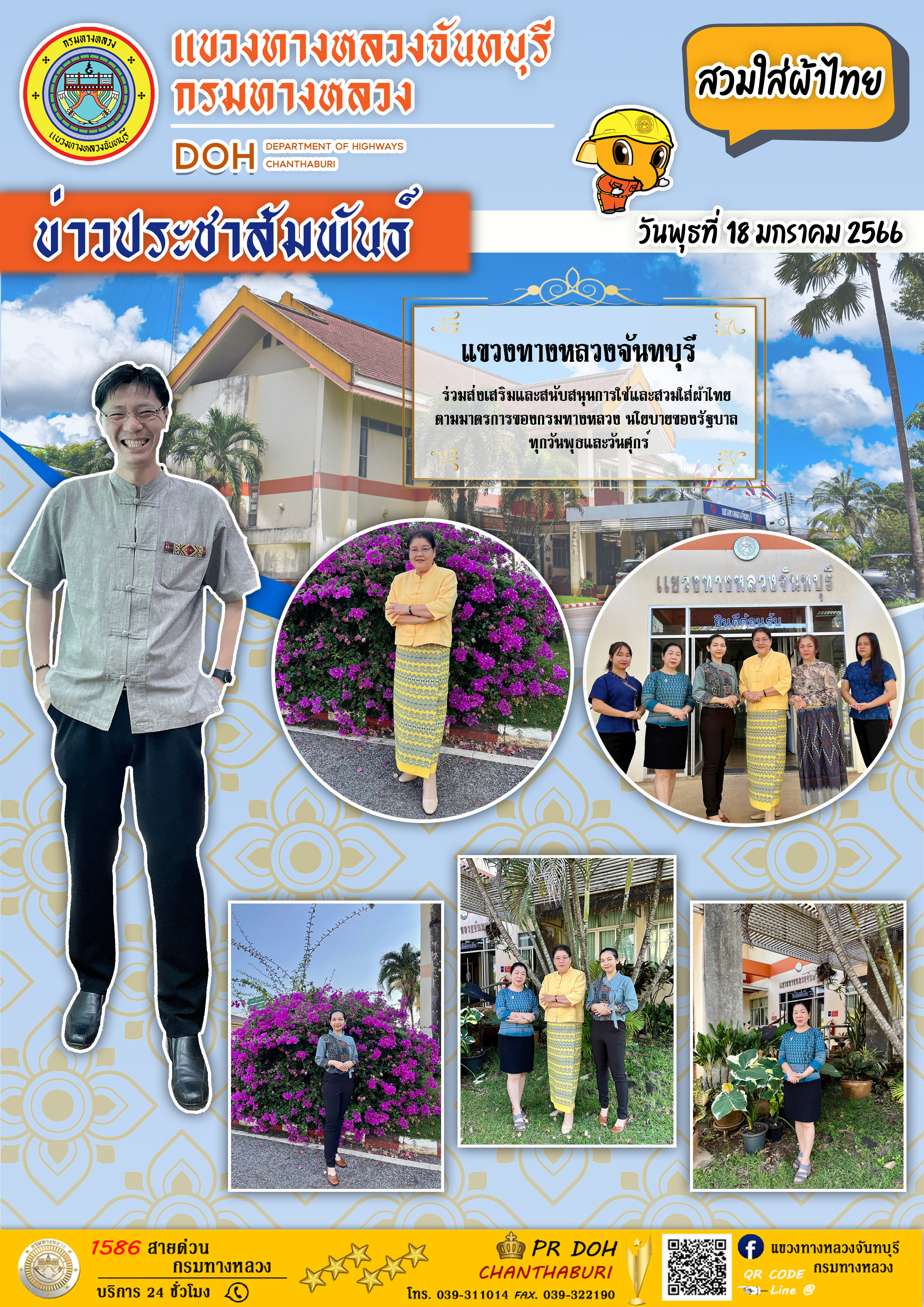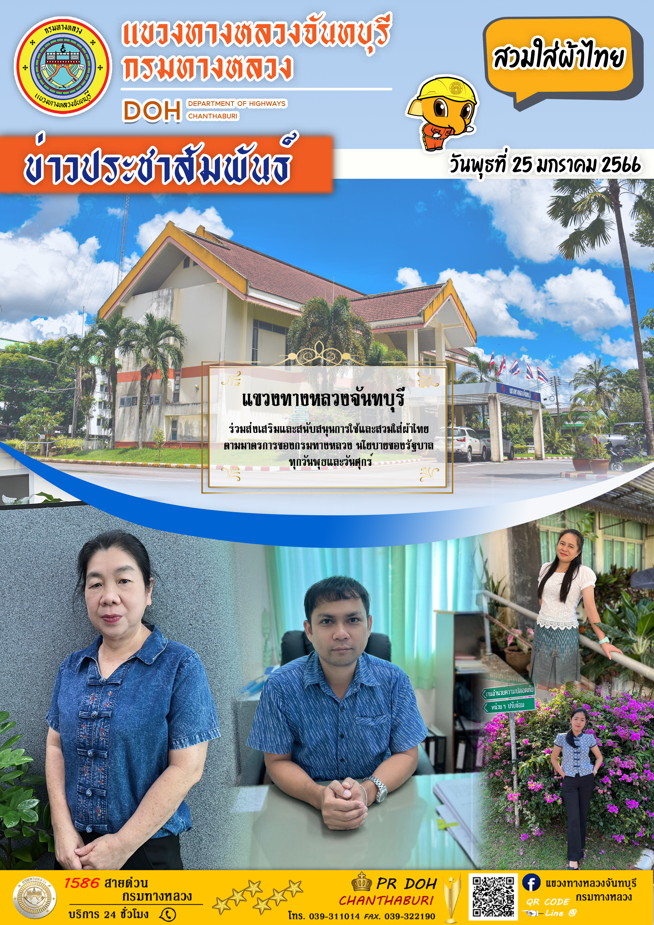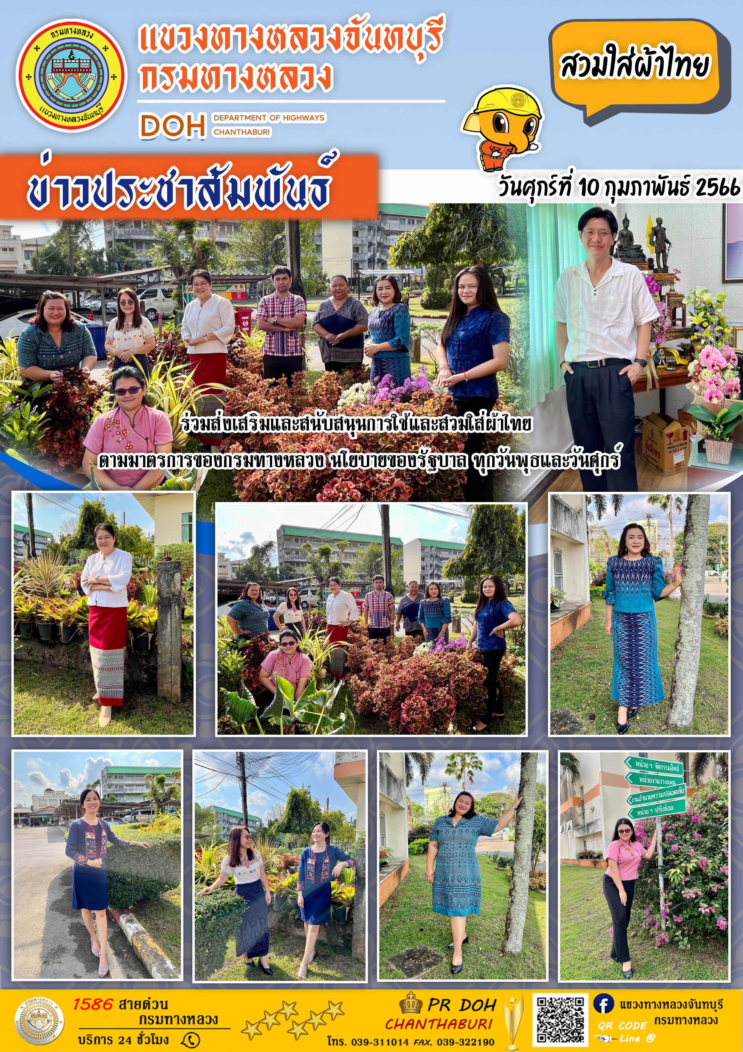 แขวงทางหลวงจันทบุรี ร่วมส่งเสริมและสนับสนุนการใช้และสวมใส่ผ้าไทย