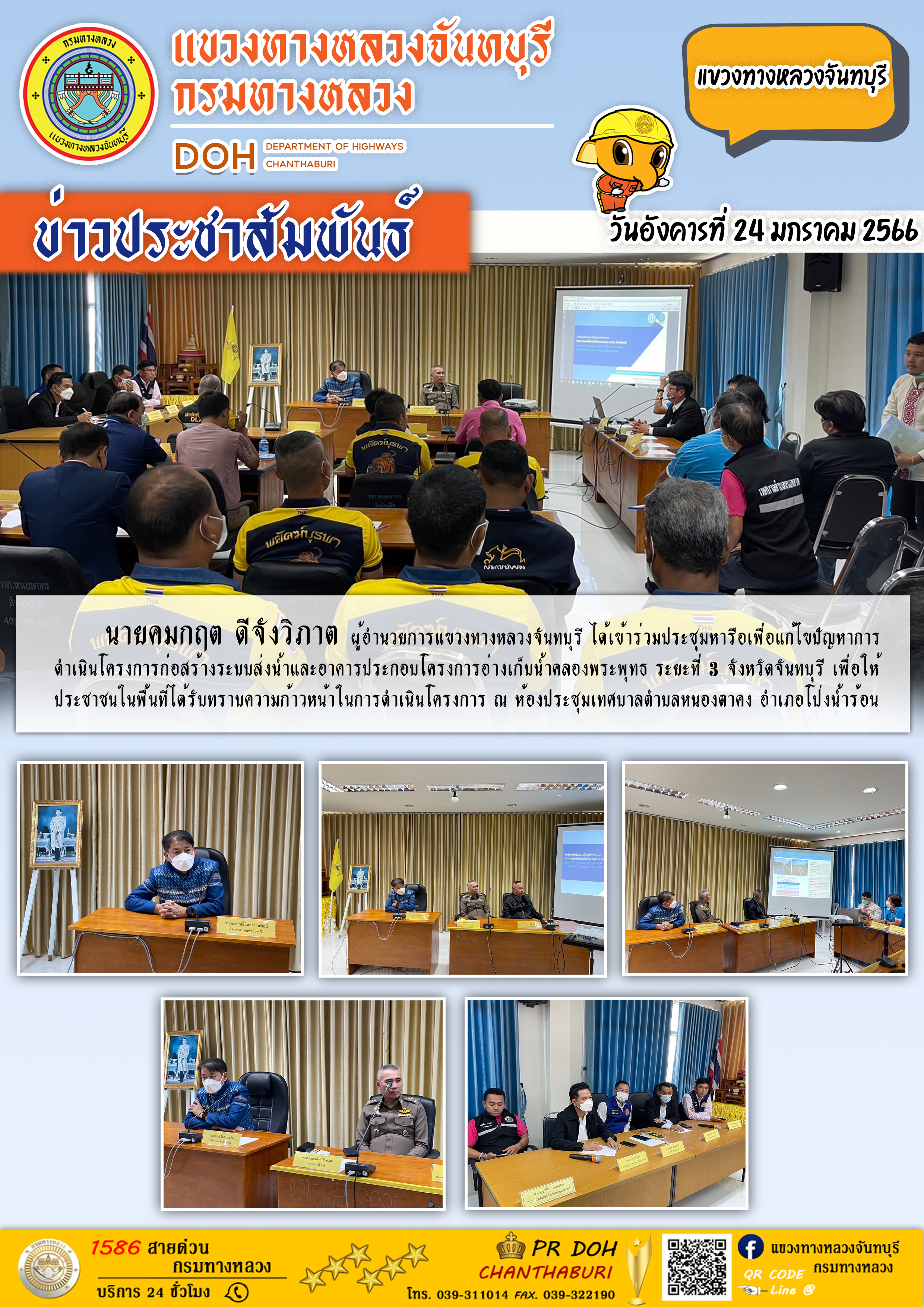 ได้เข้าร่วมประชุมหารือเพื่อแก้ไขปัญหาการดำเนินโครงการก่อสร้างระบบส่งน้ำและอาคารประกอบโครงการอ่างเก็บน้ำคลองพระพุทธ ระยะที่ 3 จังหวัดจันทบุรี
