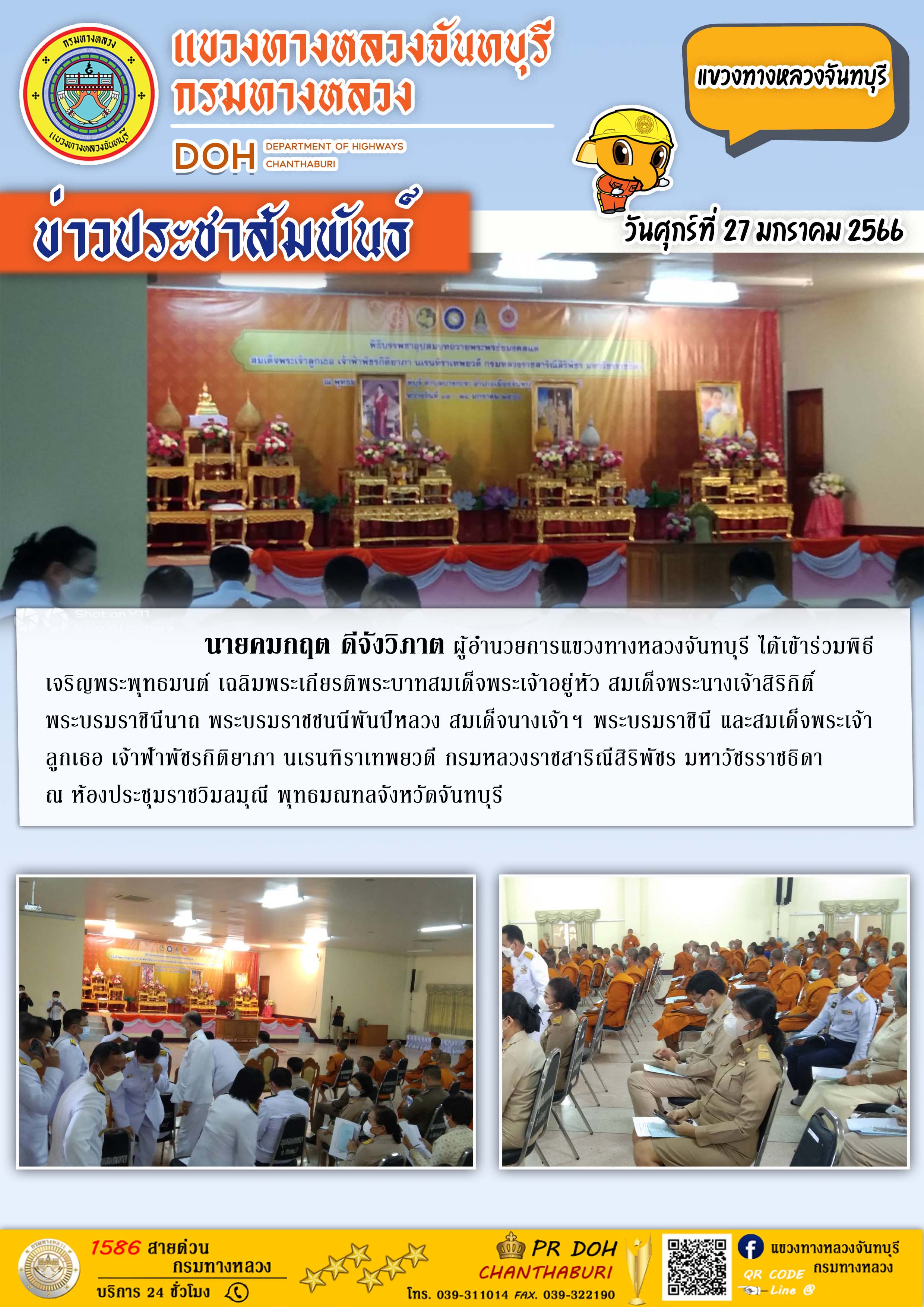 ผู้อำนวยการแขวงทางหลวงจันทบุรี ได้เข้าร่วมพิธีเจริญพระพุทธมนต์เฉลิมพระเกียรติ