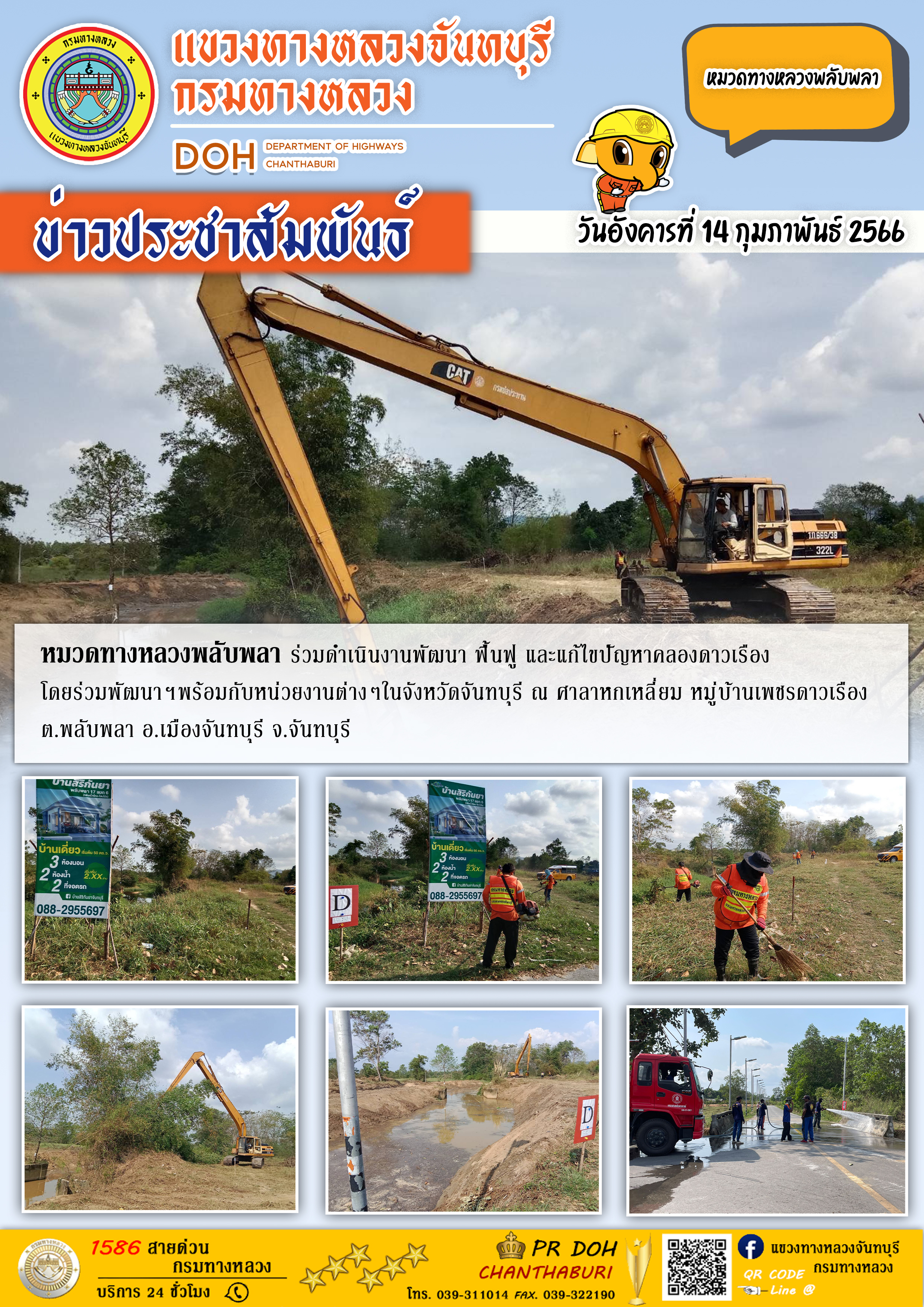 หมวดทางหลวงพลับพลา ร่วมดำเนินงานพัฒนา ฟื้นฟู และแก้ไขปัญหาคลองดาวเรือง โดยร่วมพัฒนาฯพร้อมกับหน่วยงานต่างๆในจังหวัดจันทบุรี