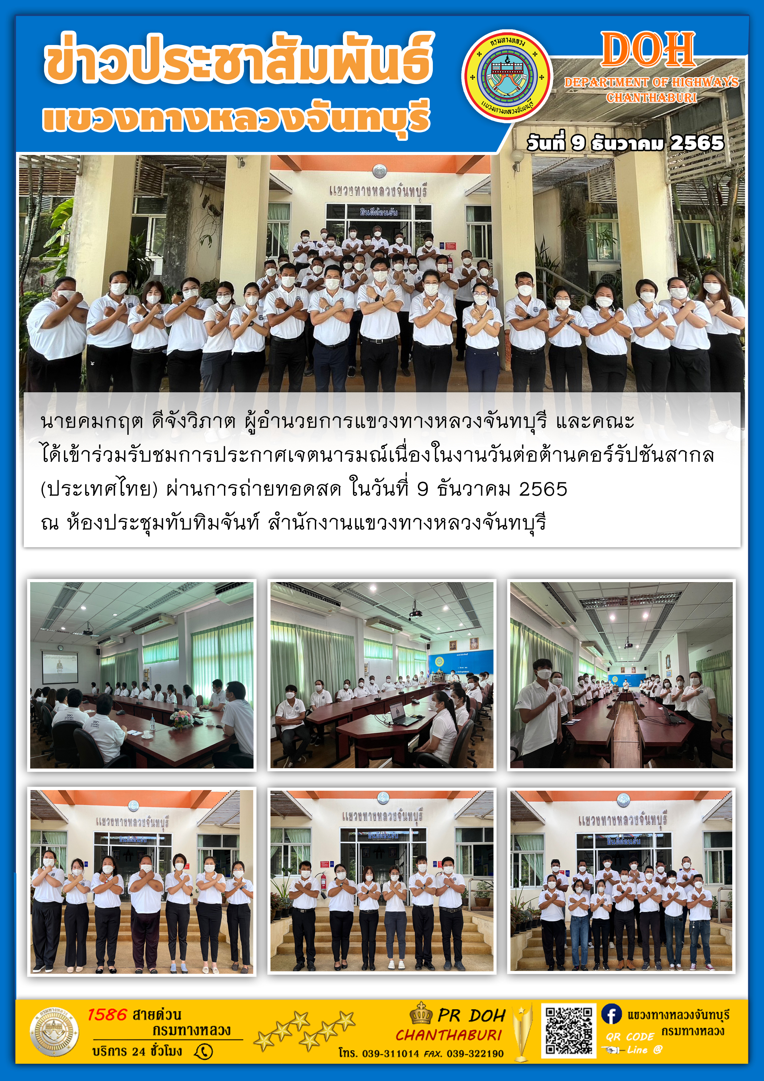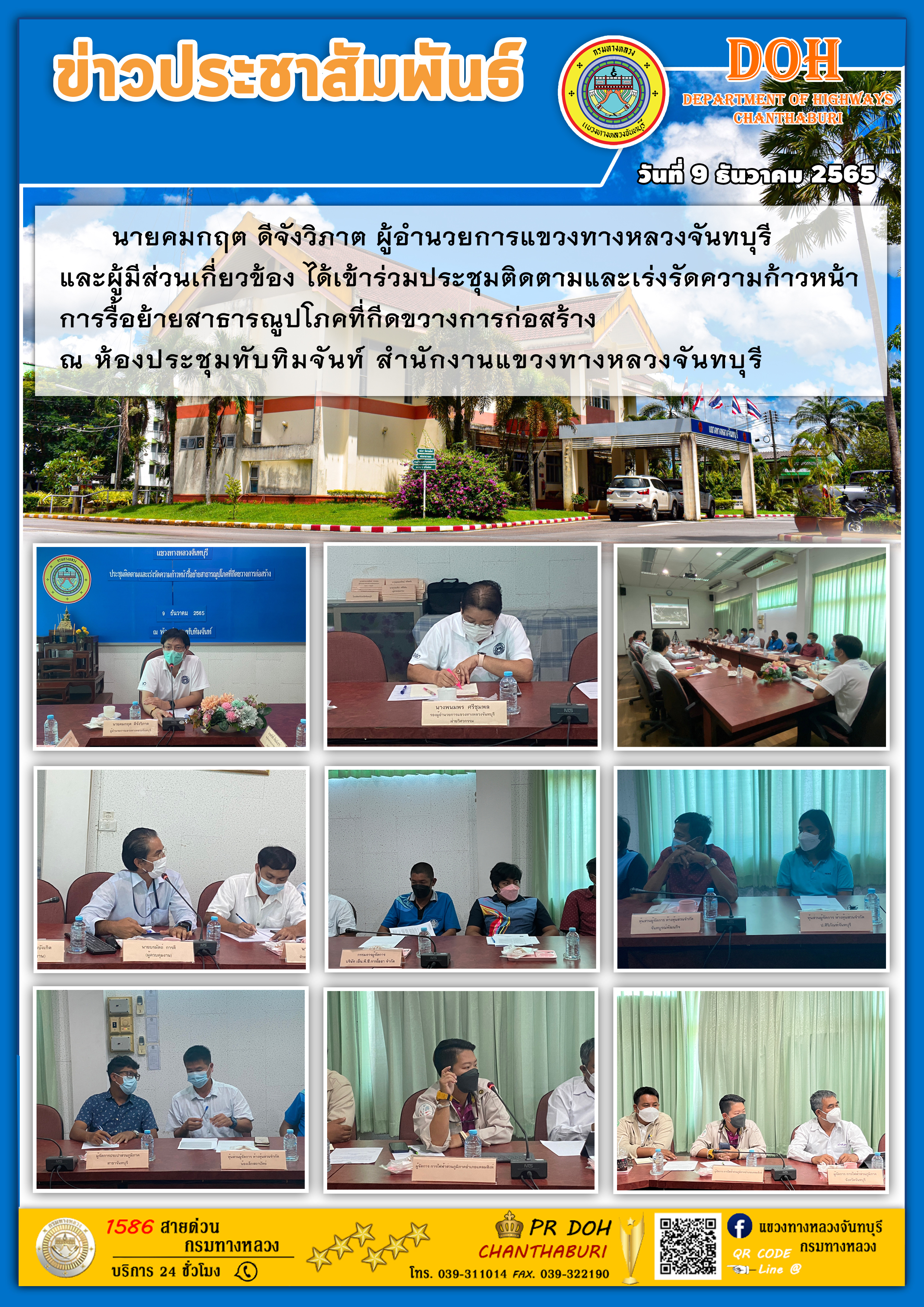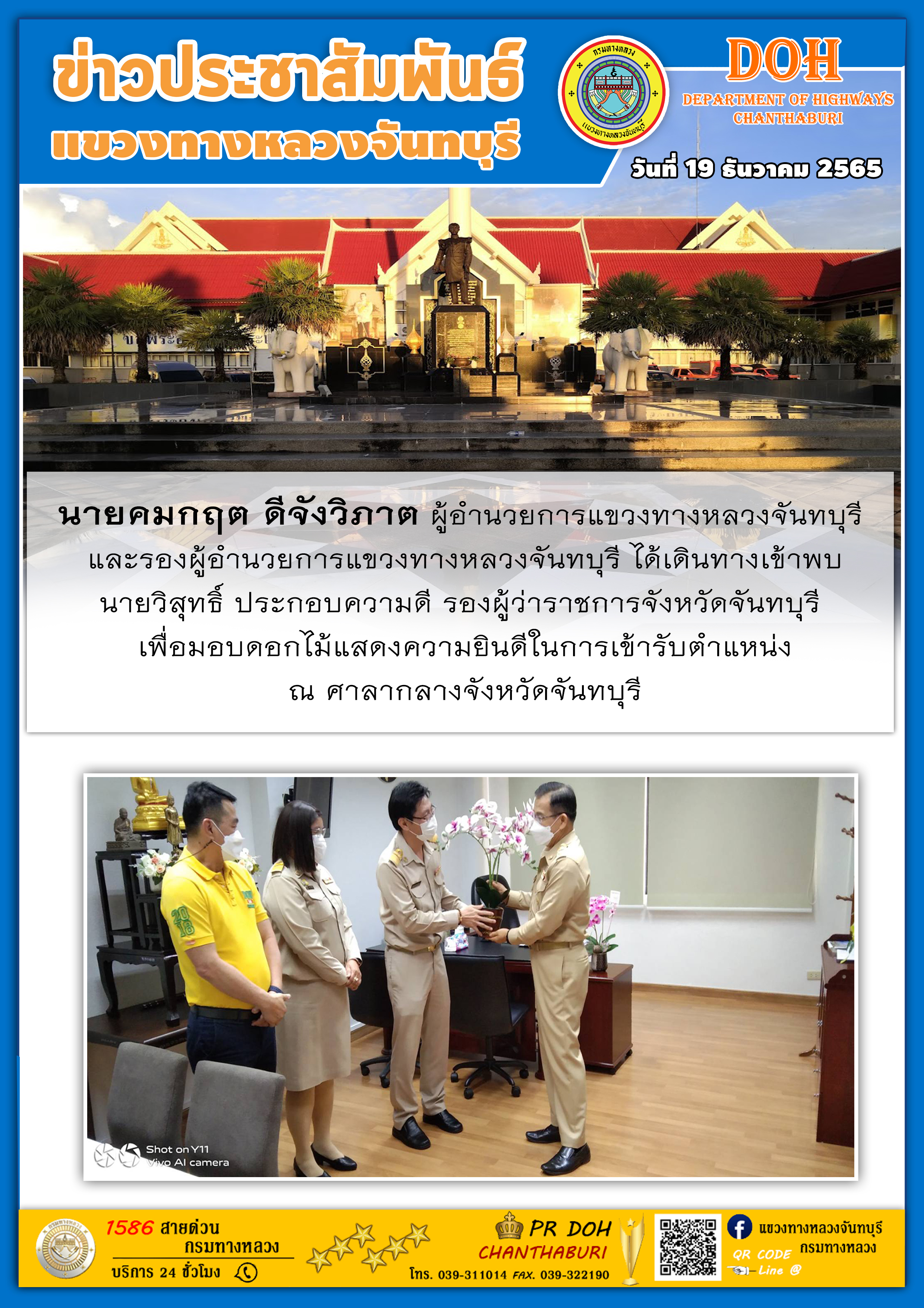 แขวงทางหลวงจันทบุรี ได้เดินทางเข้าพบนายวิสุทธิ์ ประกอบความดี รองผู้ว่าราชการจังหวัดจันทบุรี เพื่อมอบดอกไม้แสดงความยินดีในการเข้ารับตำแหน่ง