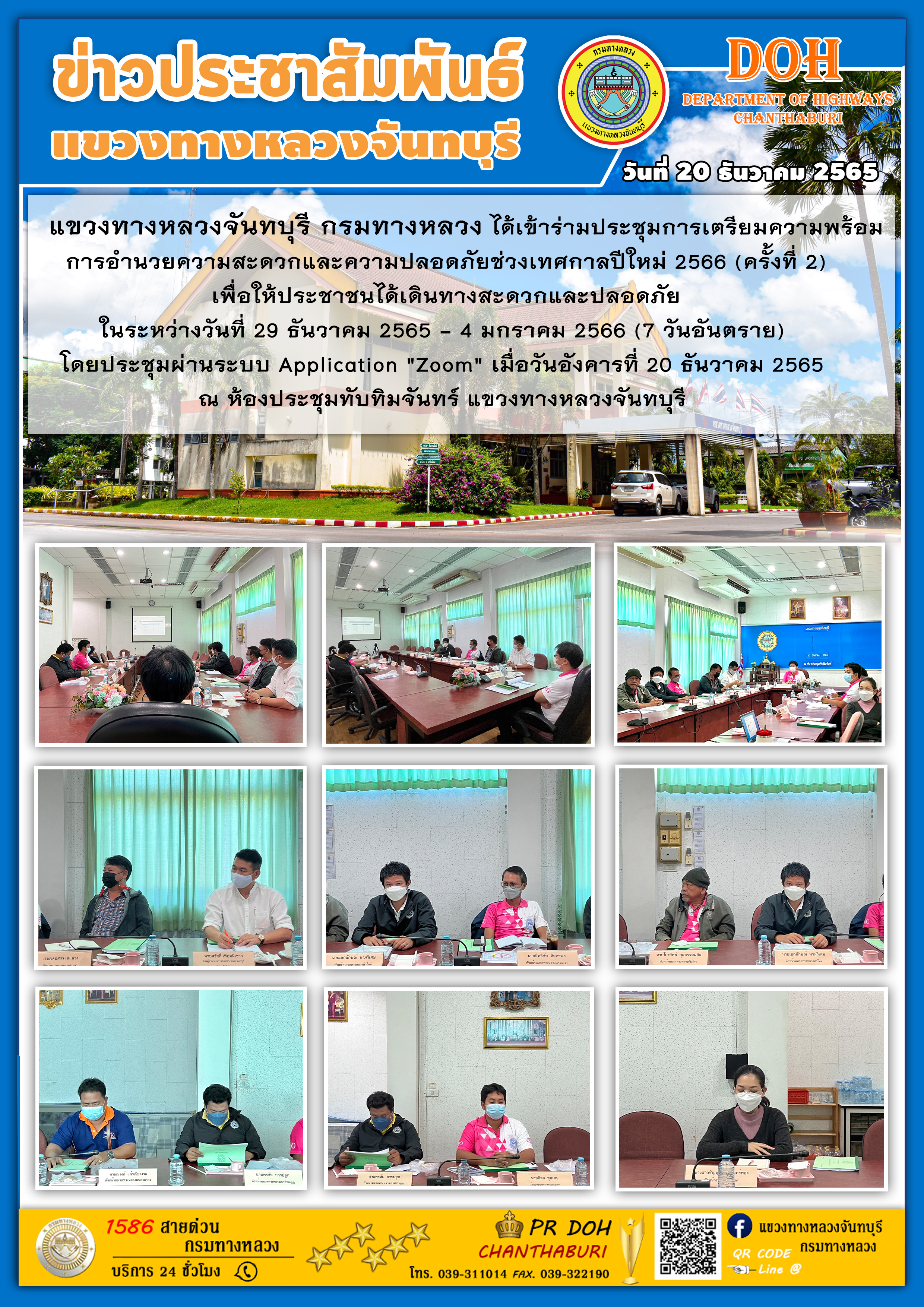แขวงทางหลวงจันทบุรีได้เข้าร่ามประชุมการเตรียมความพร้อมการอำนวยความสะดวกและความปลอดภัยช่วงเทศกาลปีใหม่ 2566 (ครั้งที่ 2)