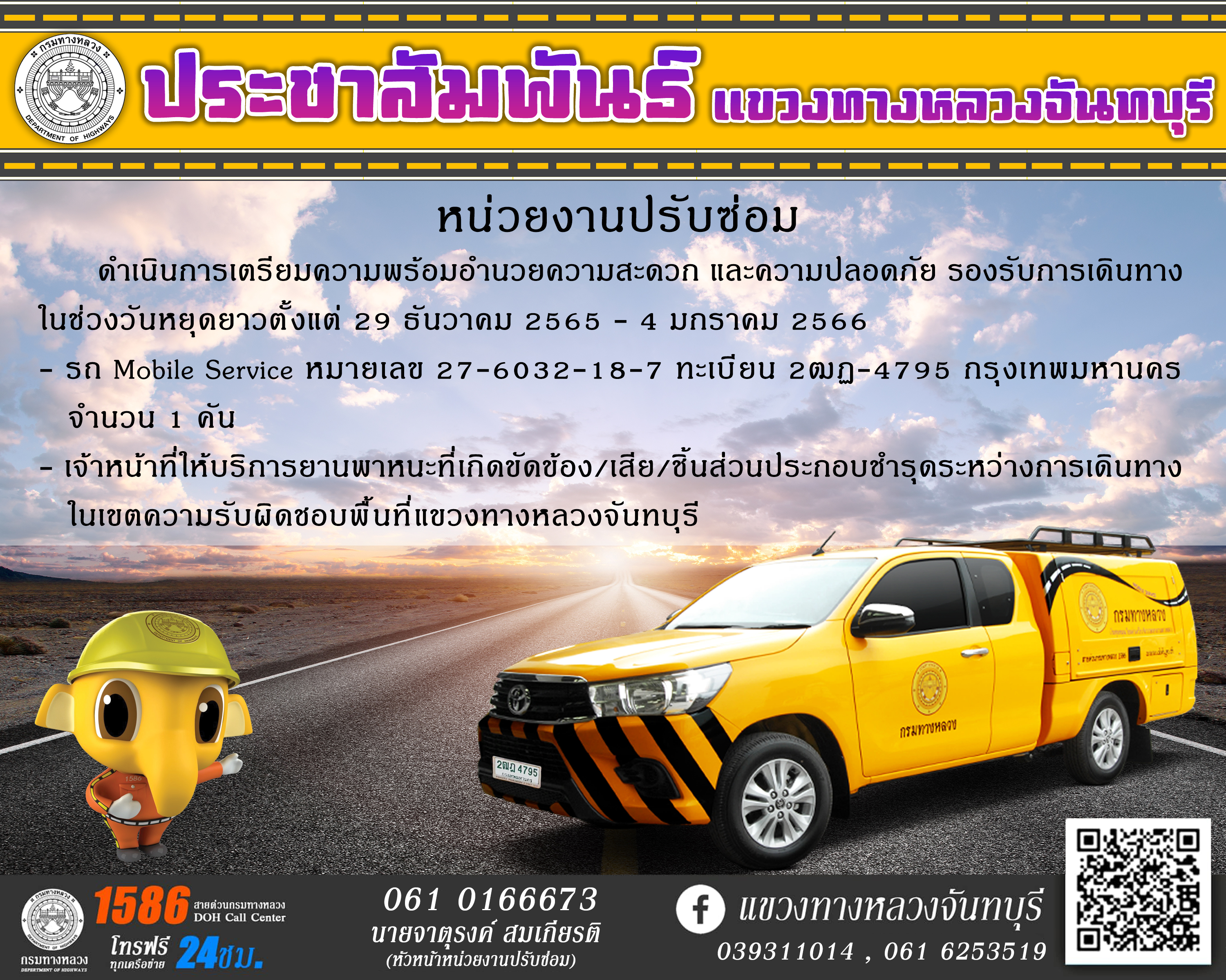 หน่วยงานปรับซ่อมได้ดำเนินการเตรียมความพร้อมอำนวยความสะดวก และความปลอดภัย รองรับการเดินทาง ในช่วงวันหยุดยาวเทศกาลปีใหม่ 2566